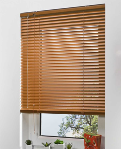 Класичні горизонтальні жалюзи. Карниз і нижній профіль сталеві, Полотно – алюмінієві ламелі. Поєднаний блок підйому-повороту. Підйом здійснюється шнуром, поворот ламелей – пластиковою тростиною.