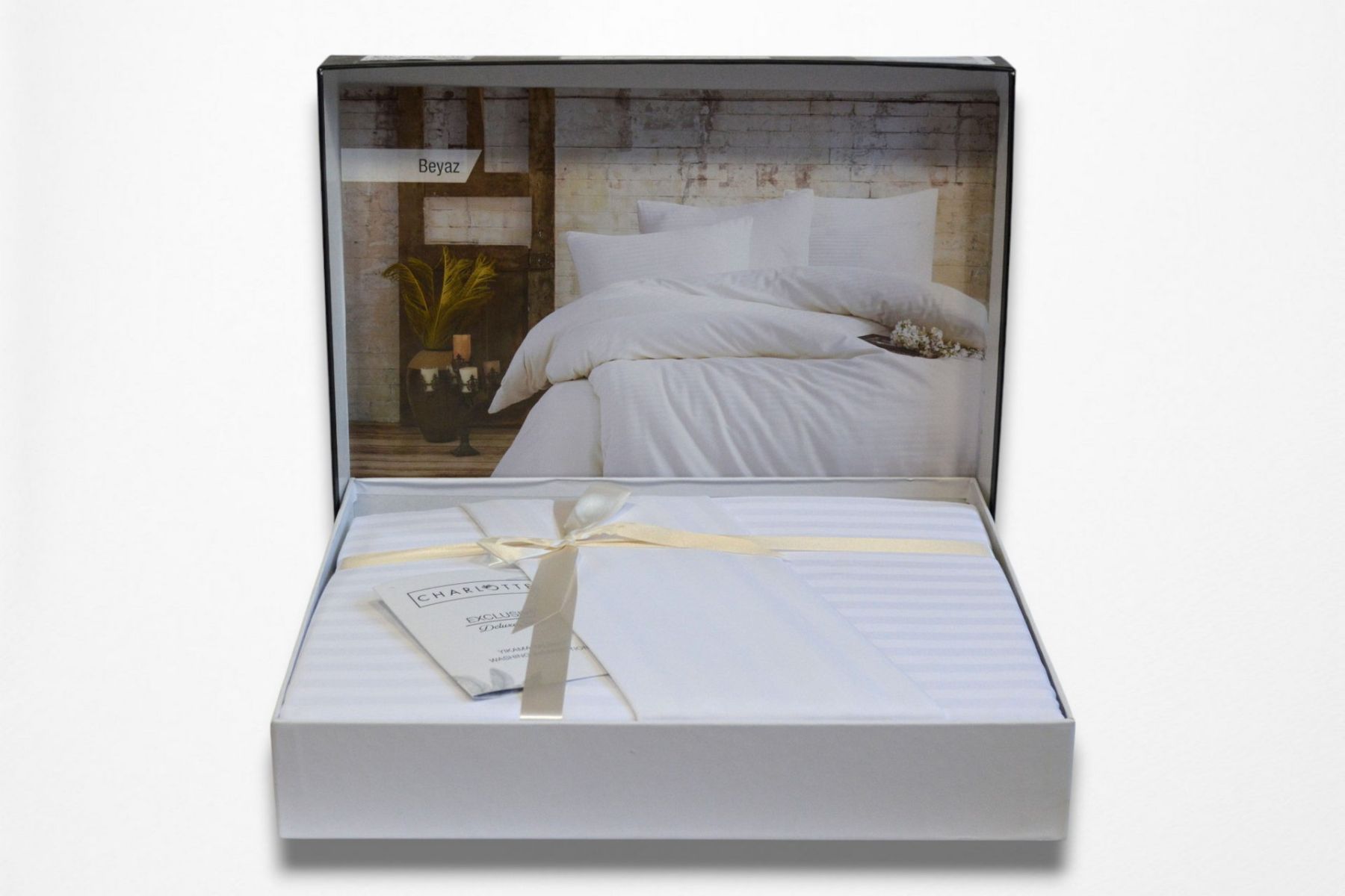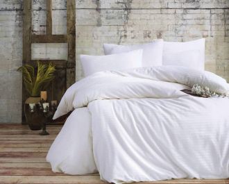 Двоспальний Євро комплект Charlotte Beyaz Сатин-Stripe / простирадло на резинці 180x200см