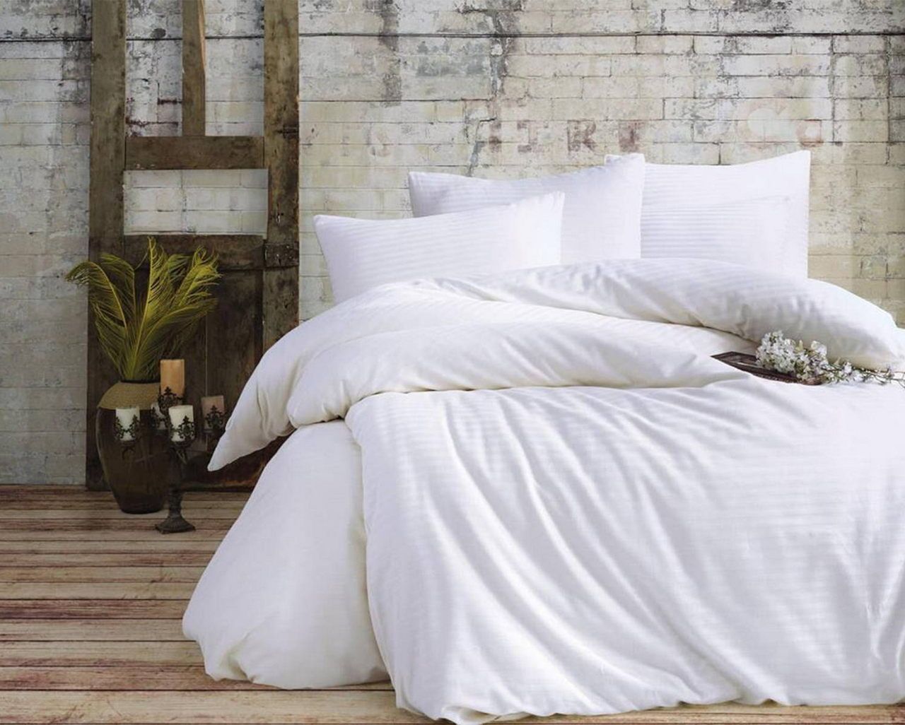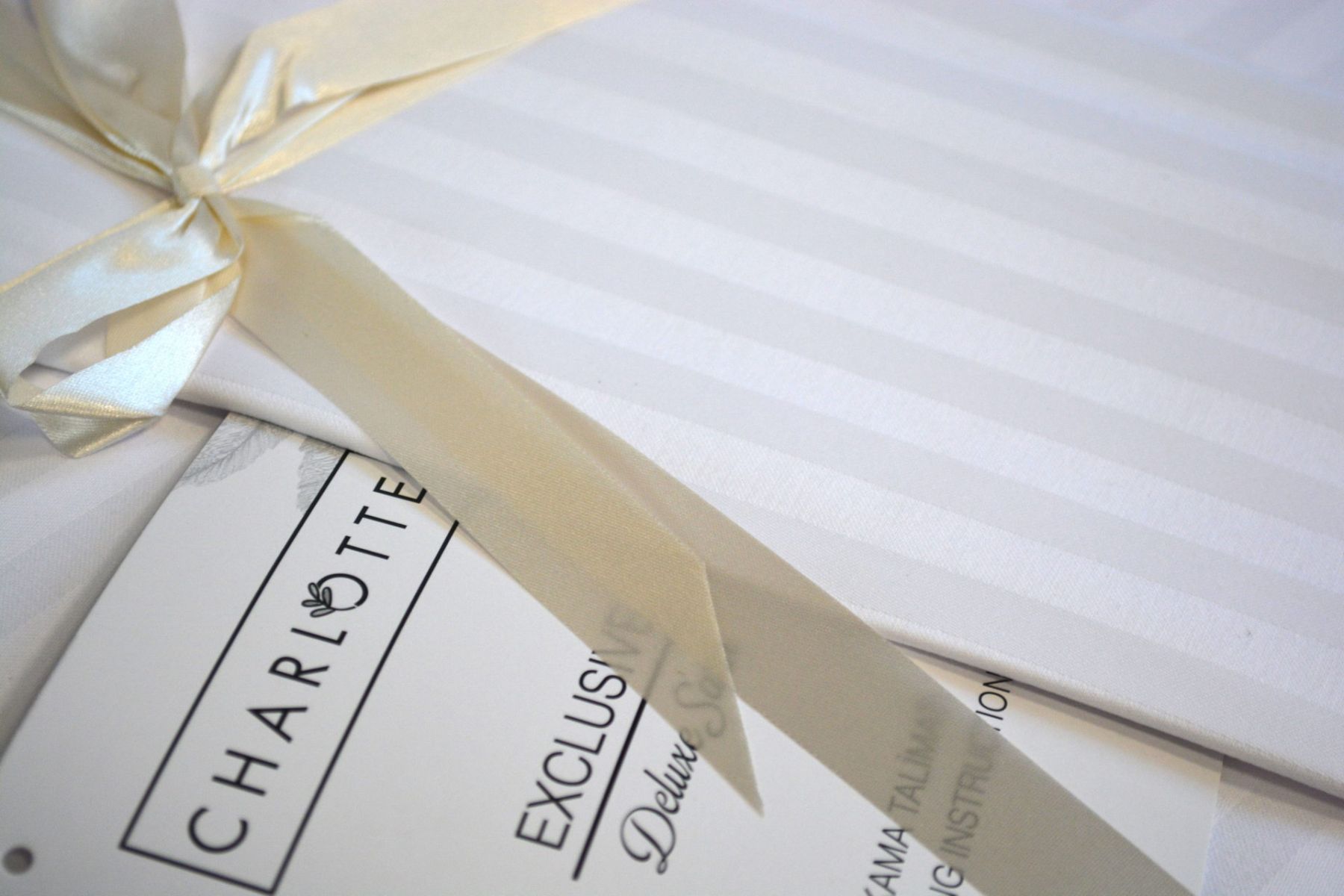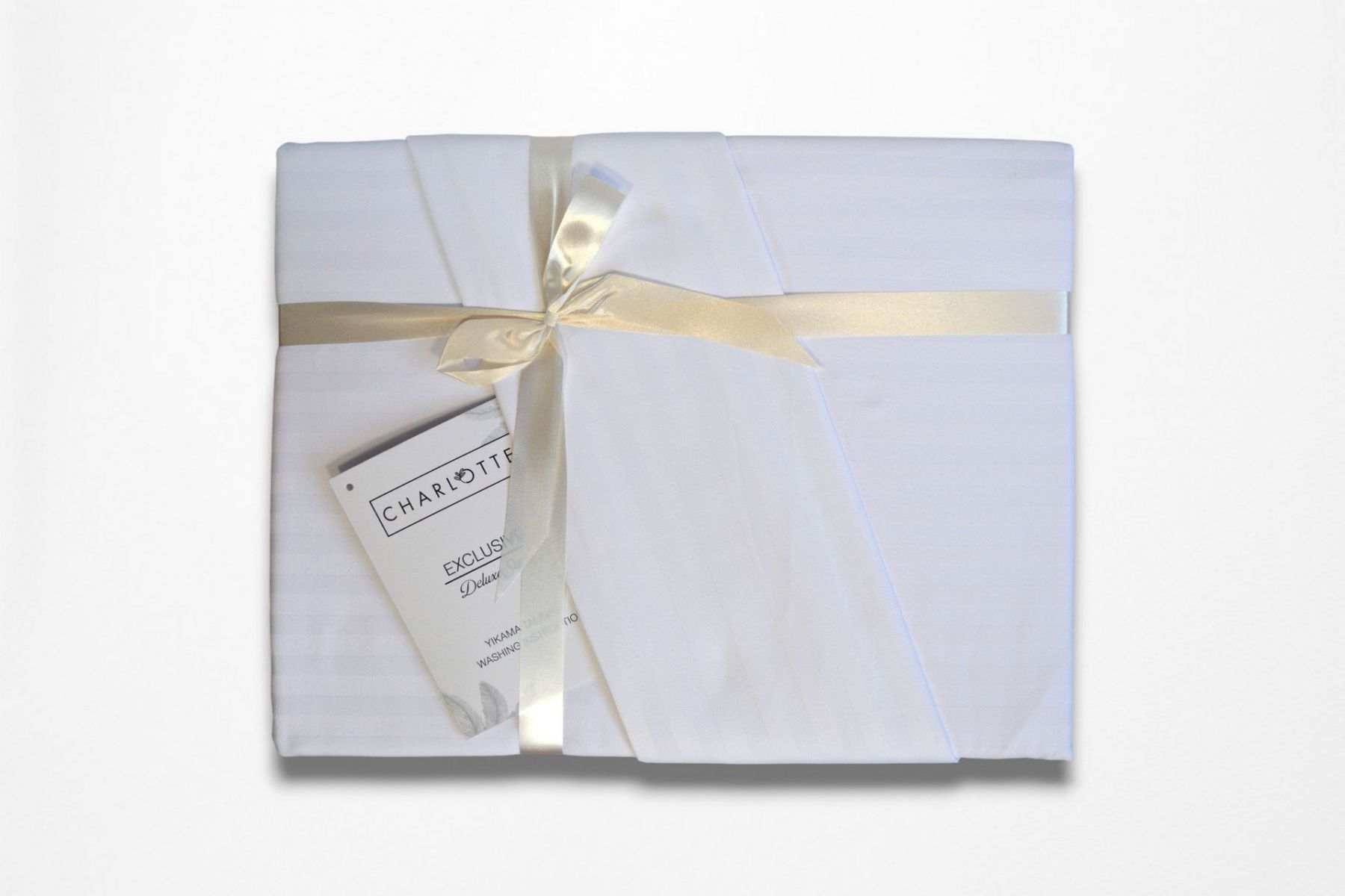 Ексклюзивний євро комплект Charlotte Stripe Satin з простирадлом на гумці. Рідкісна комплектація з фіксованим простирадлом розміру 180х200 см (+30 см борт). Виготовлений з натурального страйп-сатину (100% бавовна) — тканини з ефектом чергування матових та глянцевих смуг.
