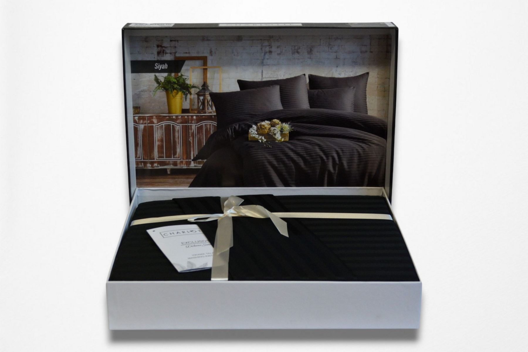 Двоспальний Євро комплект Charlotte Black Сатин-Stripe / простирадло на резинці 180x200см