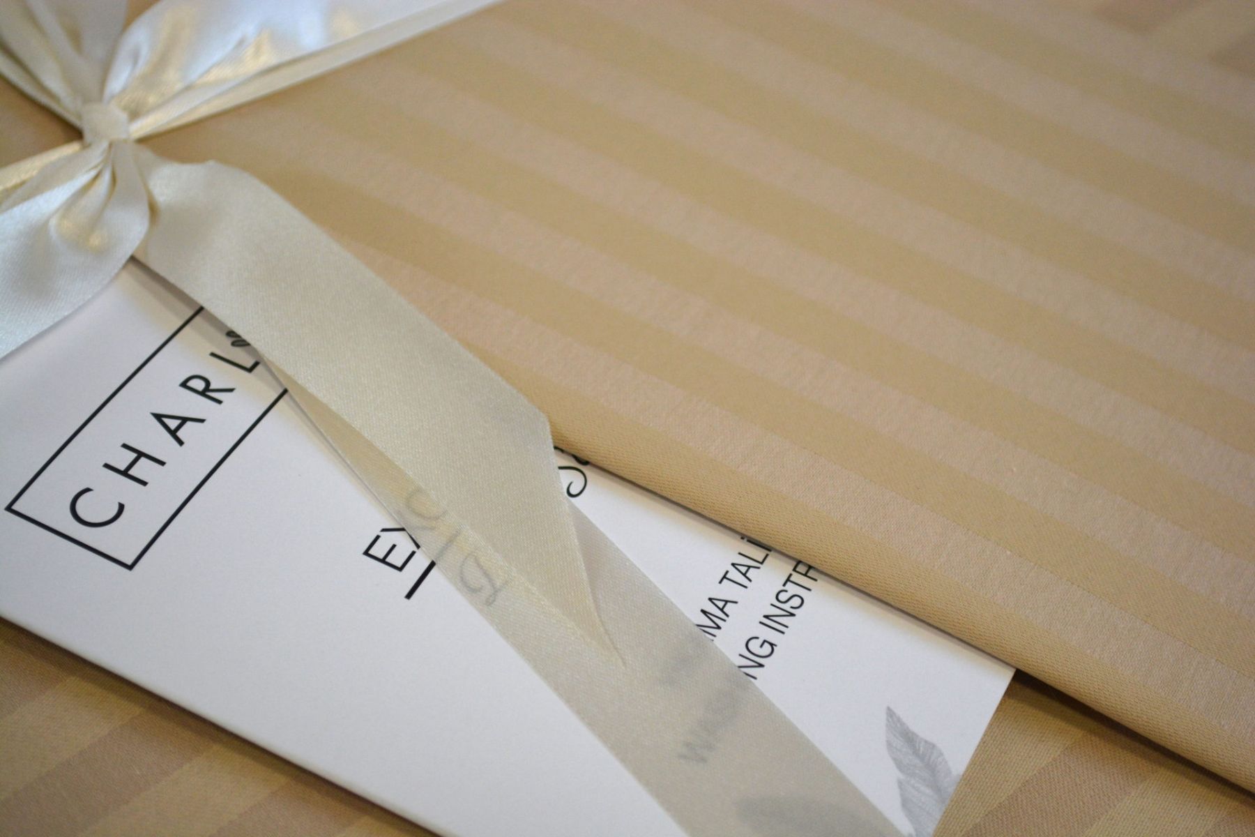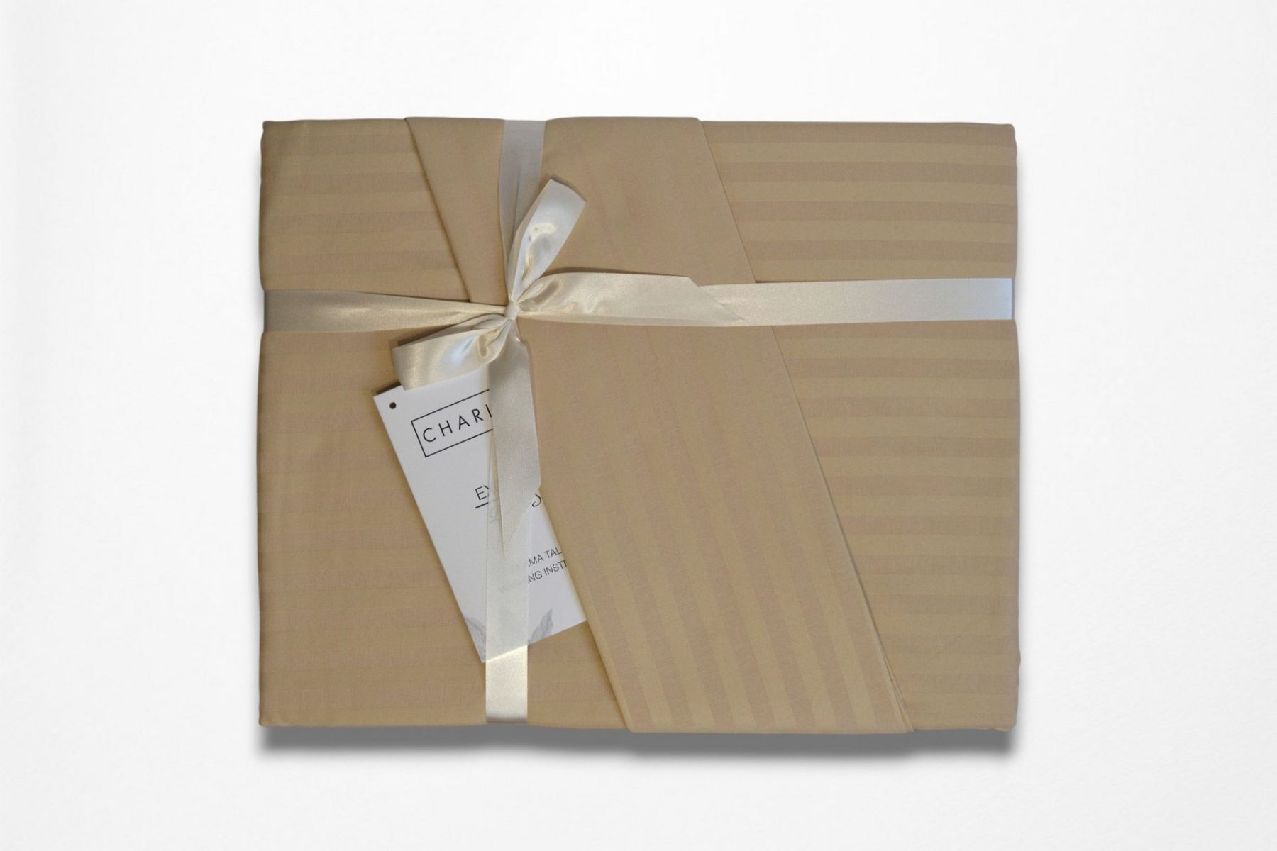 Ексклюзивний євро комплект Charlotte Stripe Satin з простирадлом на гумці. Рідкісна комплектація з фіксованим простирадлом розміру 180х200 см (+30 см борт). Виготовлений з натурального страйп-сатину (100% бавовна) — тканини з ефектом чергування матових та глянцевих смуг.
