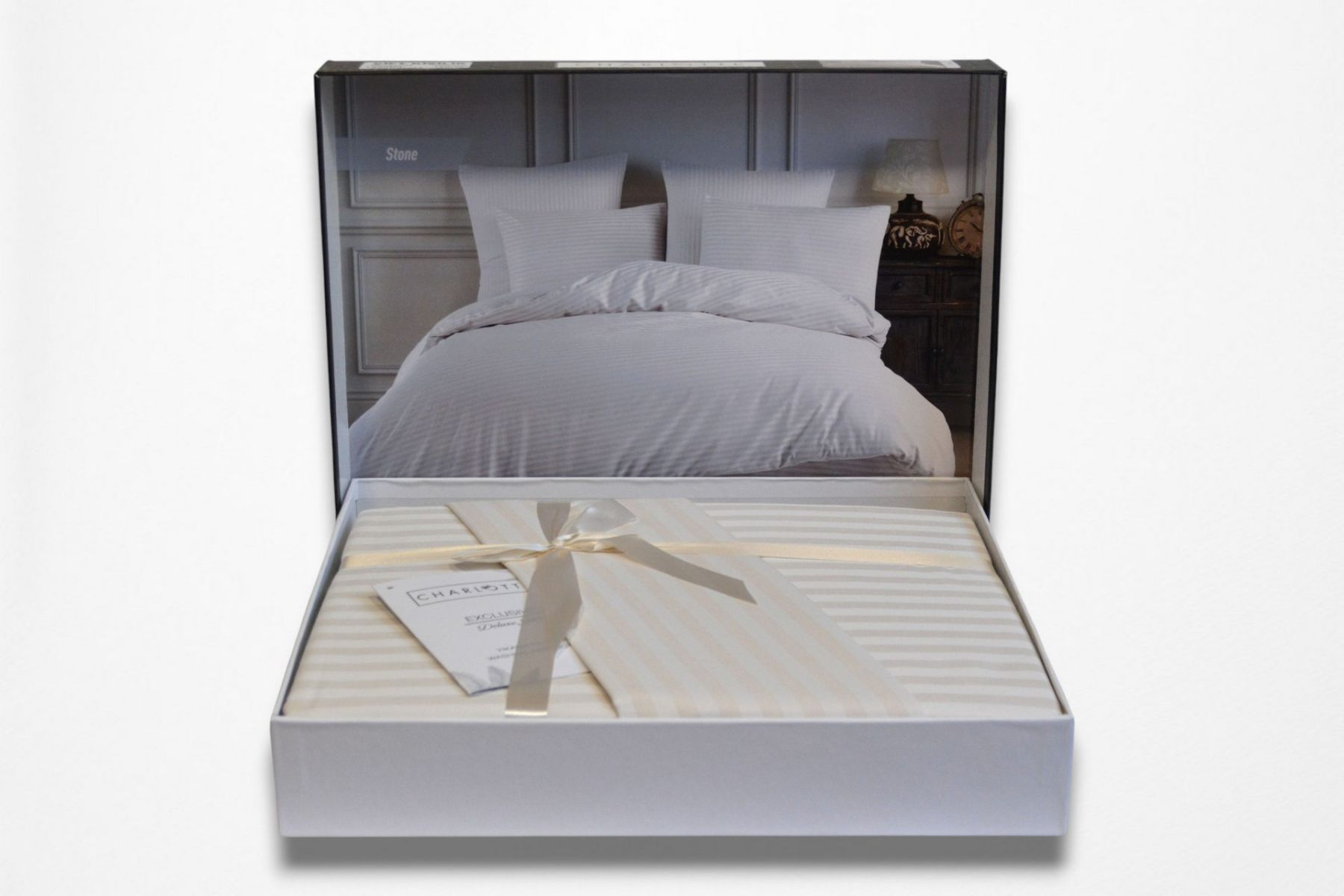 Двоспальний Євро комплект Charlotte Stone Сатин-Stripe / простирадло на резинці 180x200см