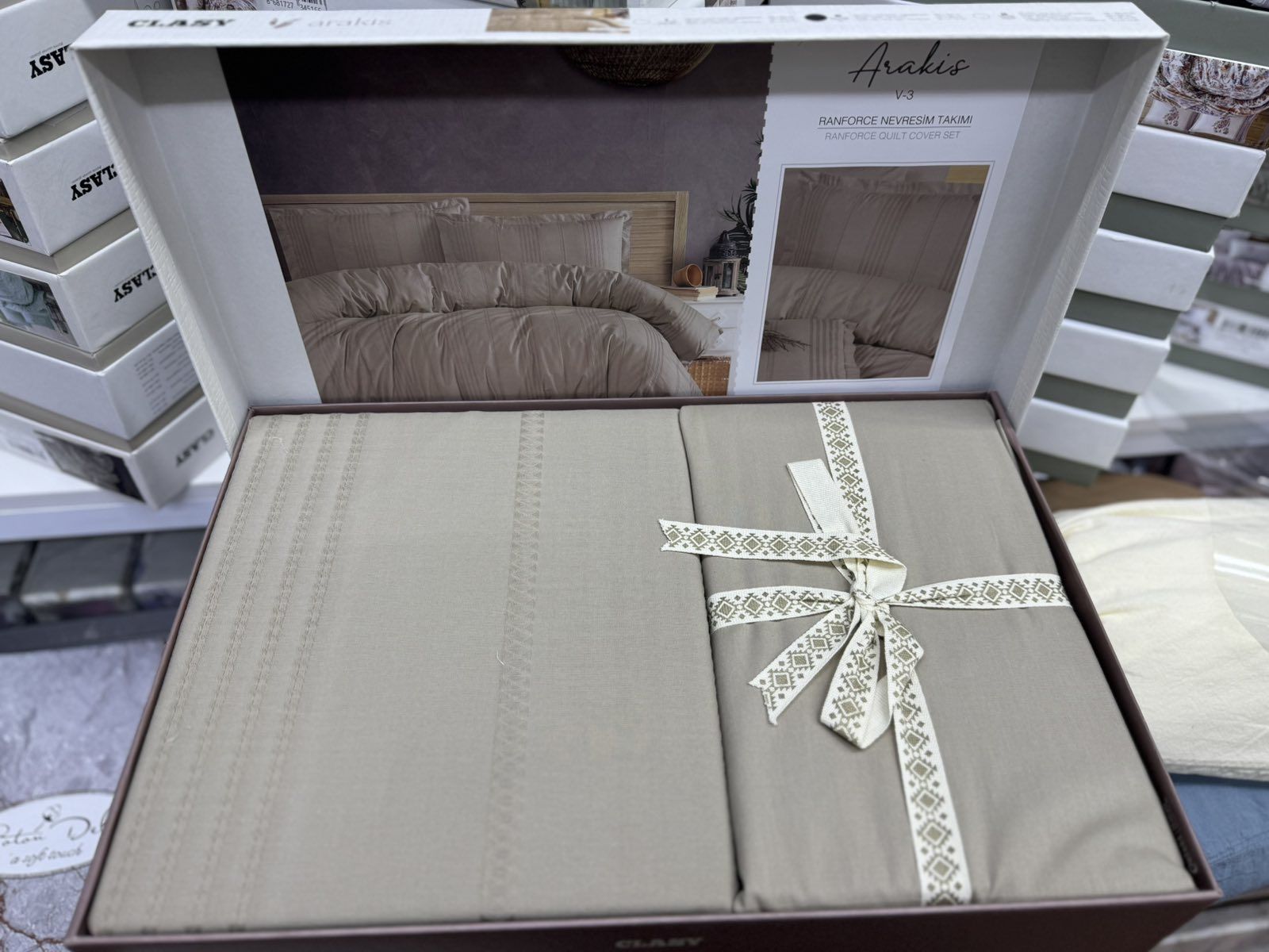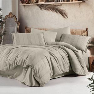 Ексклюзивна новинка — постільна білизна Clasy V3 Bej у розмірі Євро. Унікальна тканина Ранфорс Жаккард (100% бавовна) поєднує практичність бавовни та розкішну рельєфну текстуру. У комплекті підковдра 200х220 см та велике простирадло 240х260 см. Виробництво Туреччина. Стильний бежевий колір, неймовірна якість.