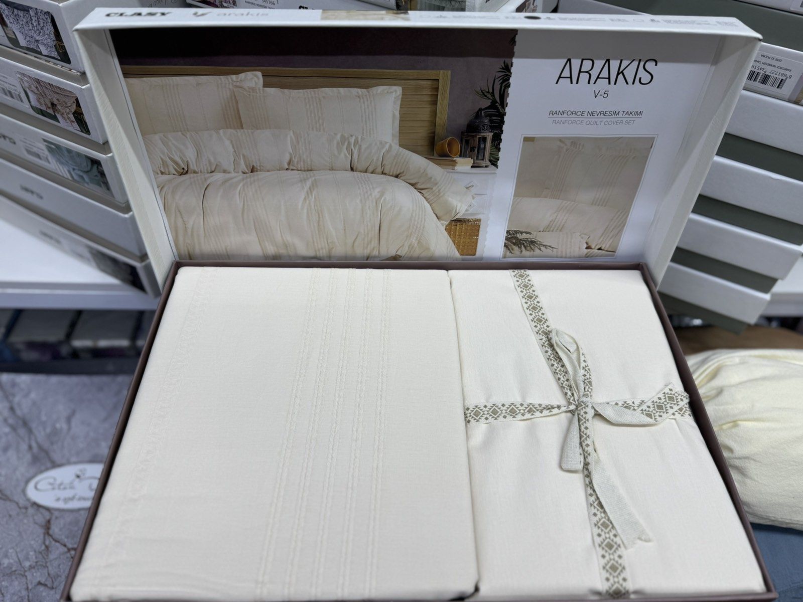 Двоспальний Євро комплект Clasy Arakis V5 Ekru Ранфорс Жаккард