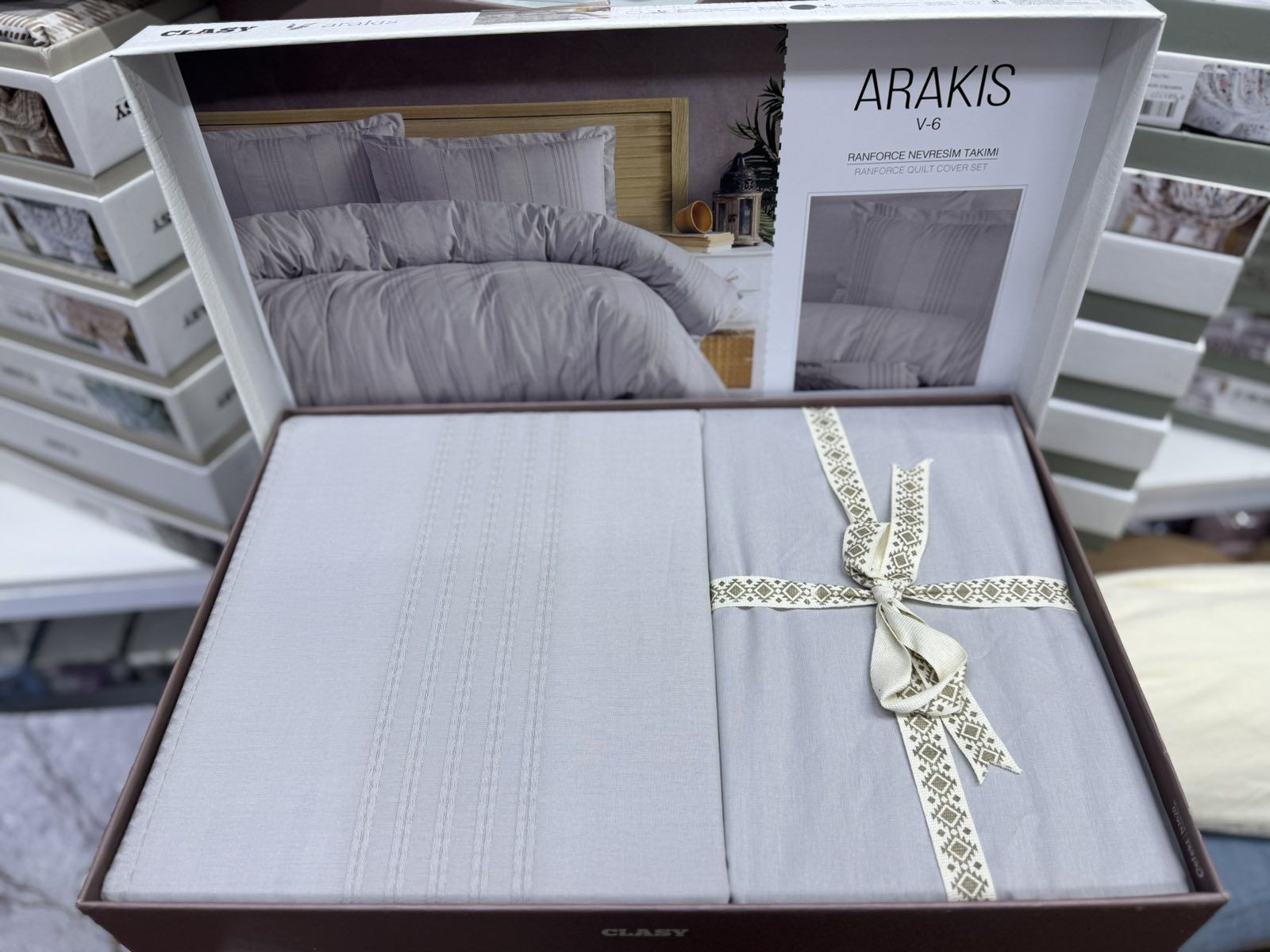 Двоспальний Євро комплект Clasy Arakis V6 Acik Gri Ранфорс Жаккард