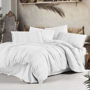 Елітна біла постільна білизна Clasy V7 Beyaz (Євро розмір). Новинка — тканина Ранфорс Жаккард (100% бавовна), що поєднує практичність та об'ємну рельєфну текстуру. У комплекті підковдра 200х220 см та велике простирадло 240х260 см. Виробництво Туреччина. Бездоганна якість та преміальний дизайн.