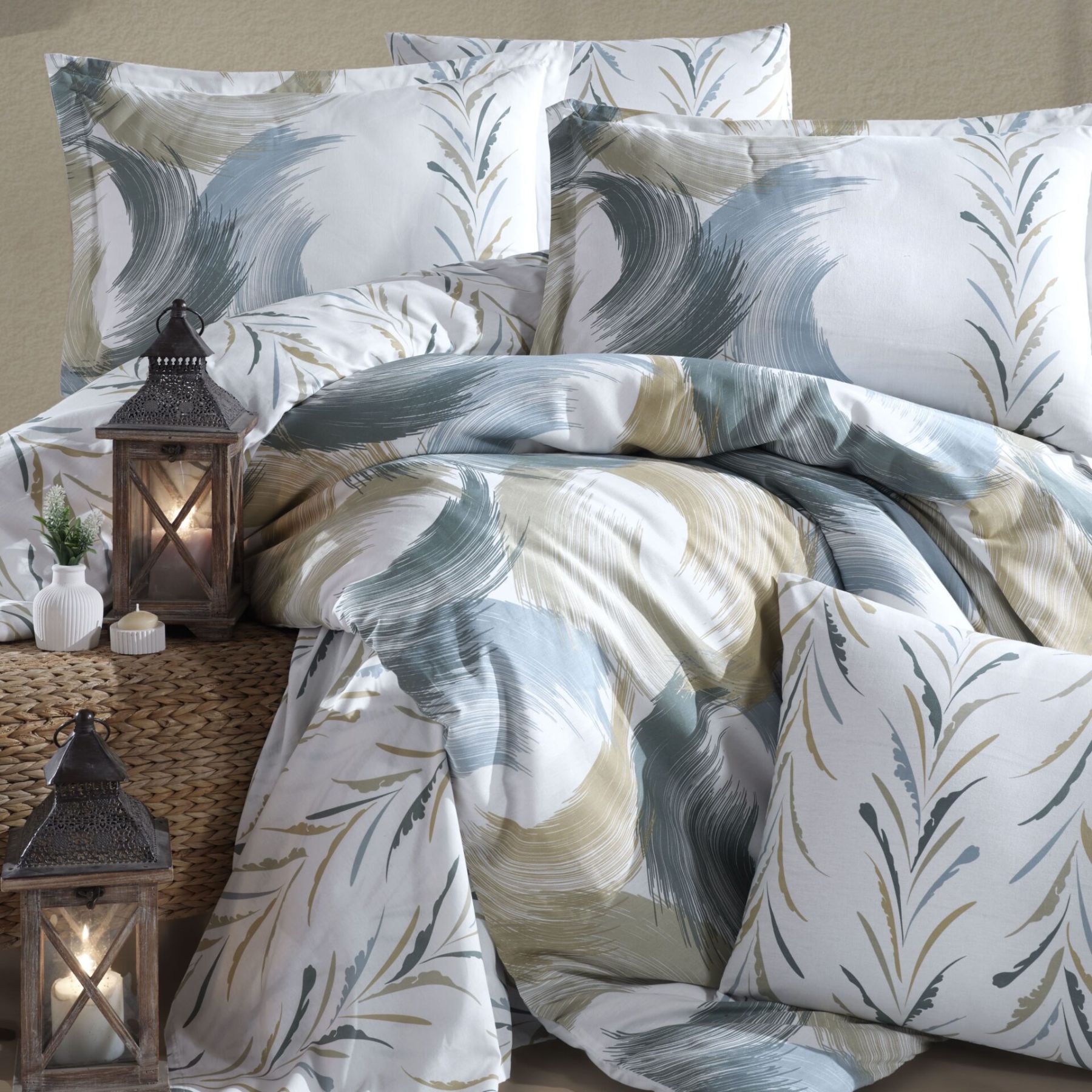 Двоспальний Євро комплект Clasy Estiva V1 Yesil Ранфорс