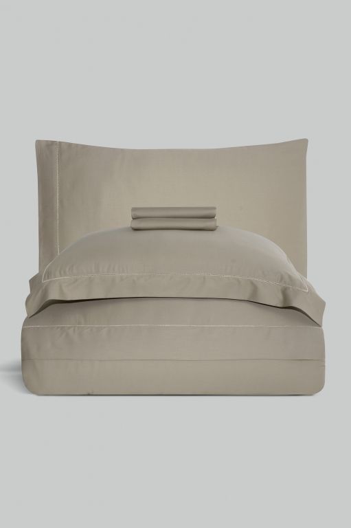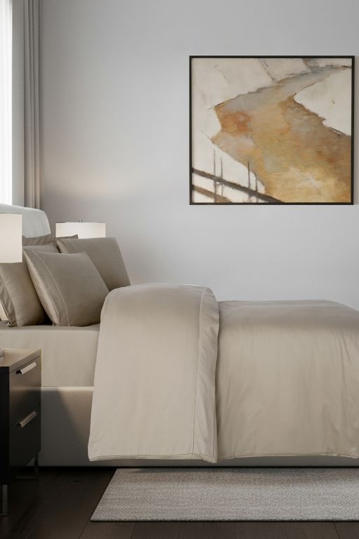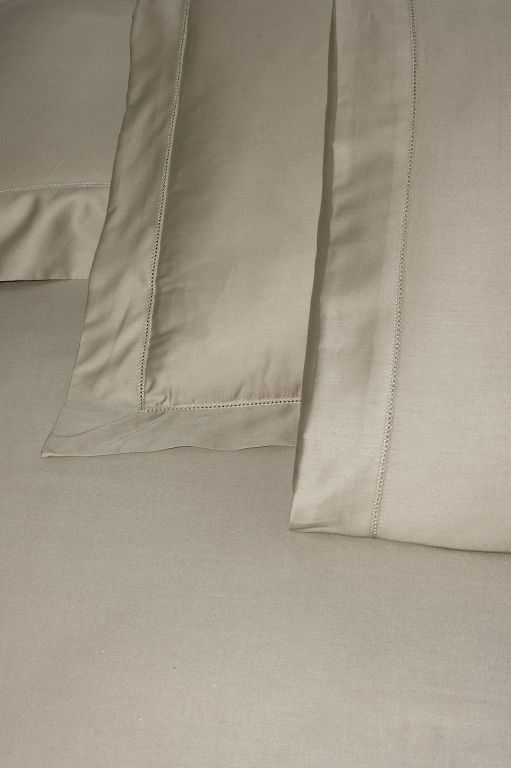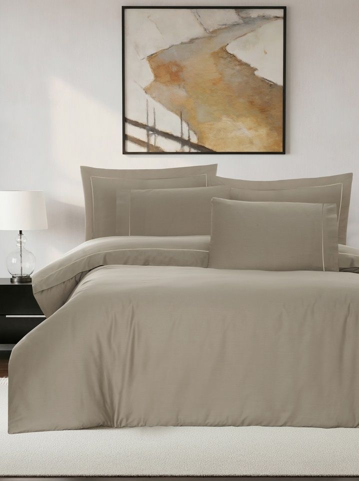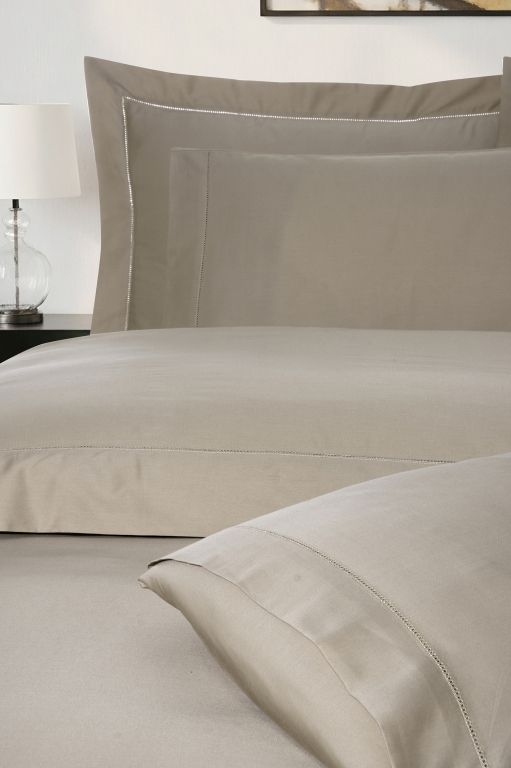 Елітний комплект La Romano Mona Frezya Rock у благородному кольорі "Rock" (теплий сіро-бежевий). Виконаний з гладкого Сатину Делюкс. Декорований витонченою ажурною мережкою. Тканина найвищої щільності (300 TC).
