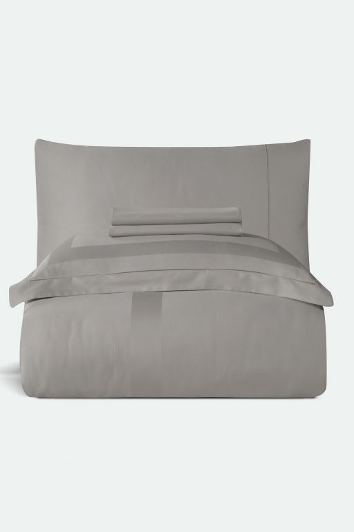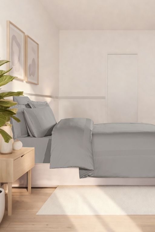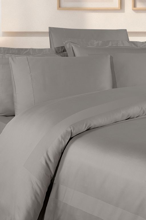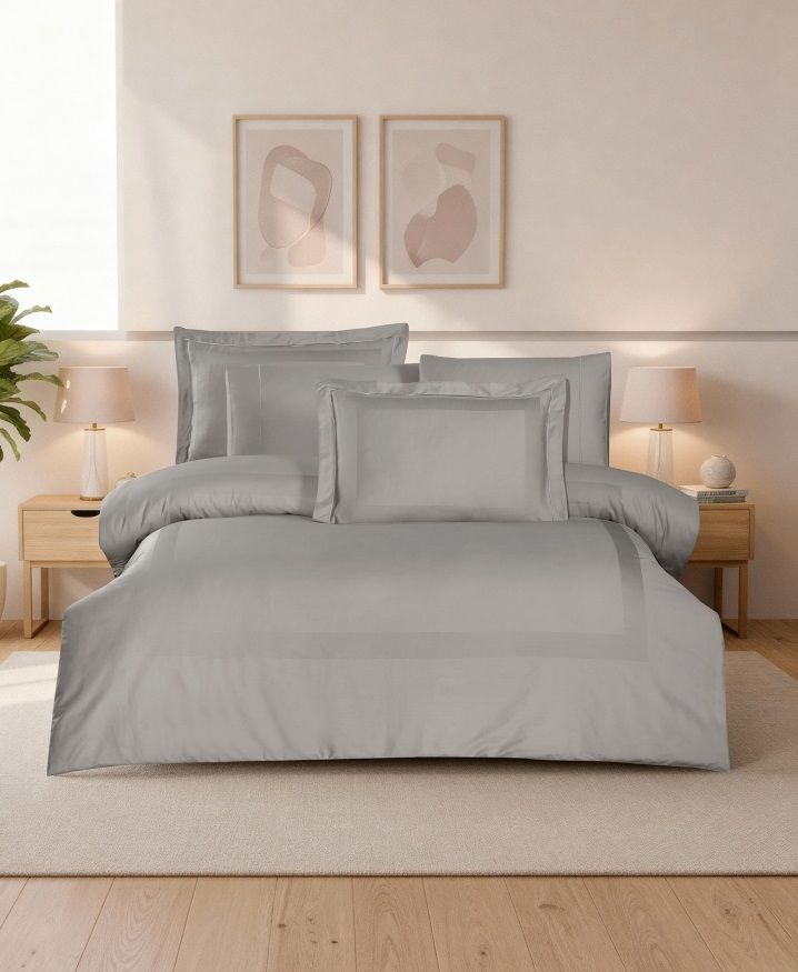 Стильний євро комплект La Romano Mona Montova Ash у попелясто-сірому кольорі. Лаконічний дизайн з широкою декоративною рамою на наволочках та підковдрі. Виготовлений з гладкого Сатину Делюкс найвищої щільності (300 TC).