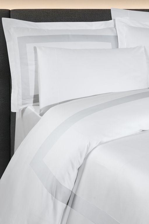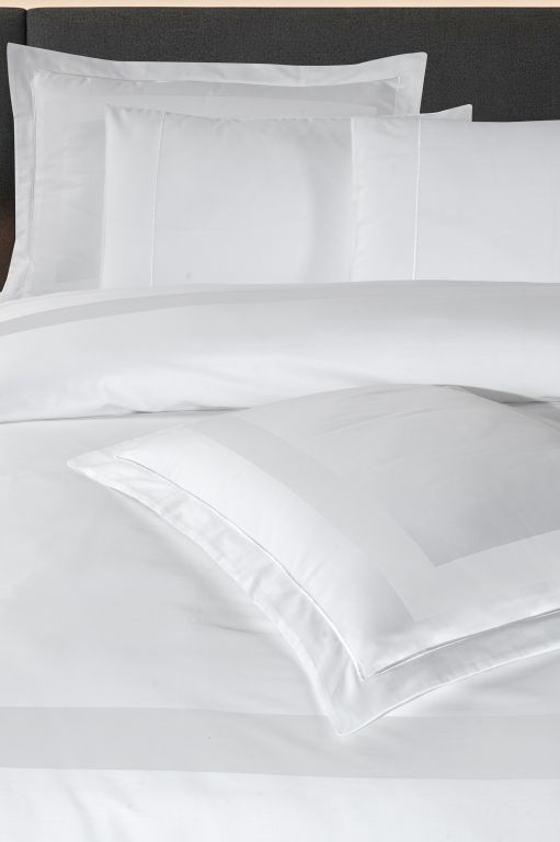 Геометрично досконалий євро комплект La Romano Mona Montova White у білому кольорі. Особливість дизайну — широка декоративна рамка на наволочках та підковдрі. Виготовлений з гладкого Сатину Делюкс найвищої щільності (300 TC).