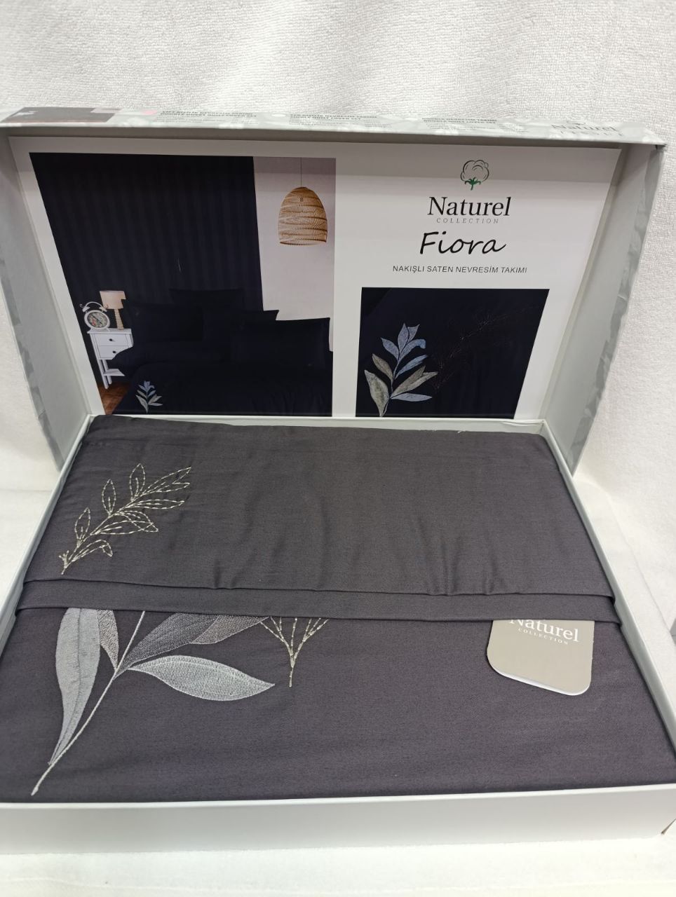 Вишуканий євро комплект Naturel Satin Embroidery з декоративною вишивкою. Виготовлений з натурального гладкого сатину преміум-класу. Елегантний дизайн з орнаментами на наволочках та підковдрі. Постачається у фірмовій подарунковій коробці.