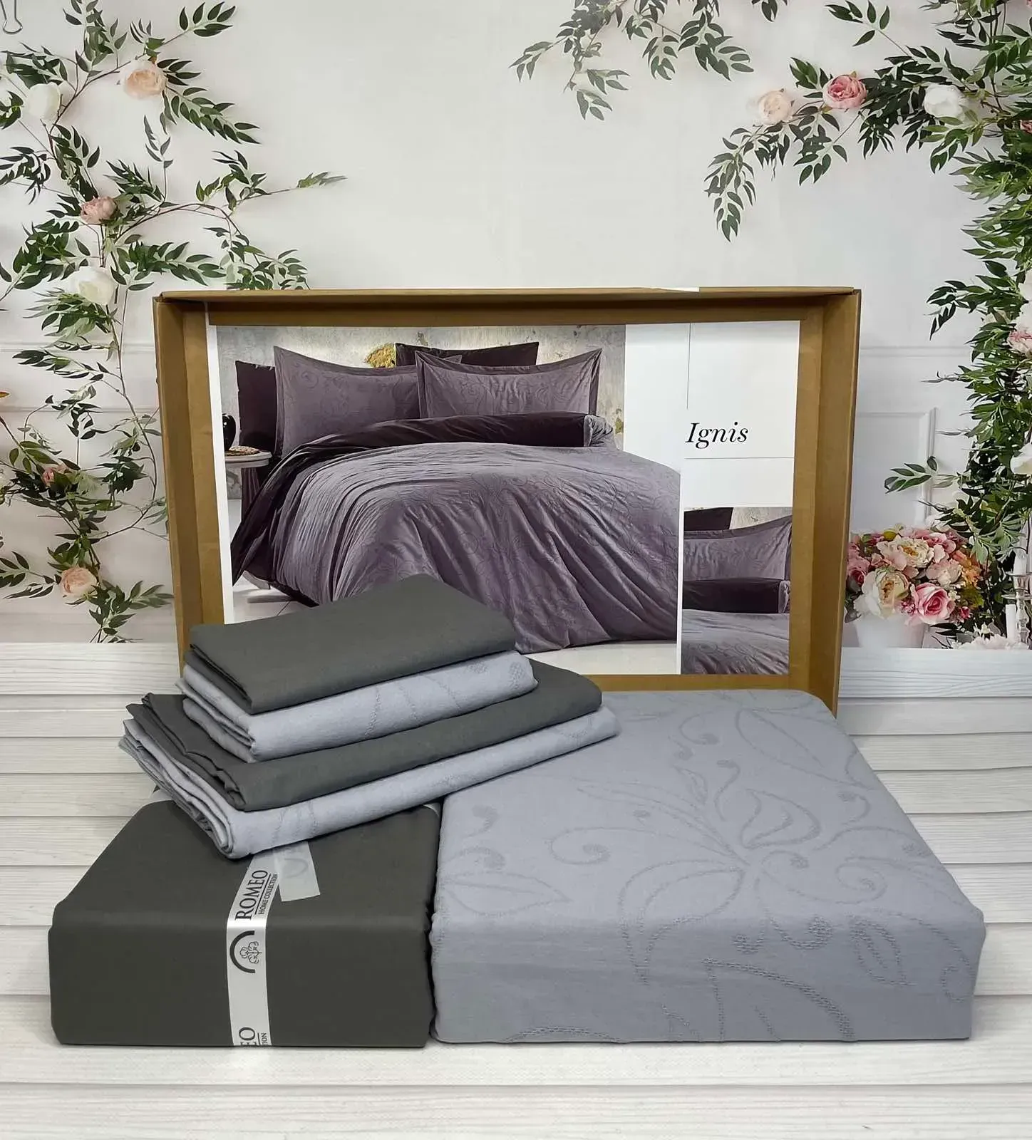 Постільна білизна Romeo Home Ignis Євро розміру. Ексклюзивна комбінація попліну та жакарду з вишивкою. Натуральна 100% бавовна, 4 наволочки у наборі. Вишукана Туреччина у подарунковій упаковці.