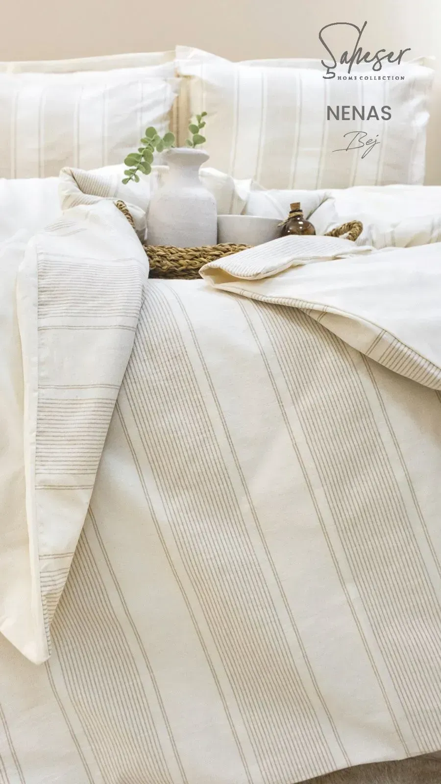 Якісна постільна білизна Saheser Nenas Bej (Євро). 100% органічна бавовна, ранфорс. Приємний бежевий колір, еко-серія Nature. Довговічна та цікава тканина. Туреччина.