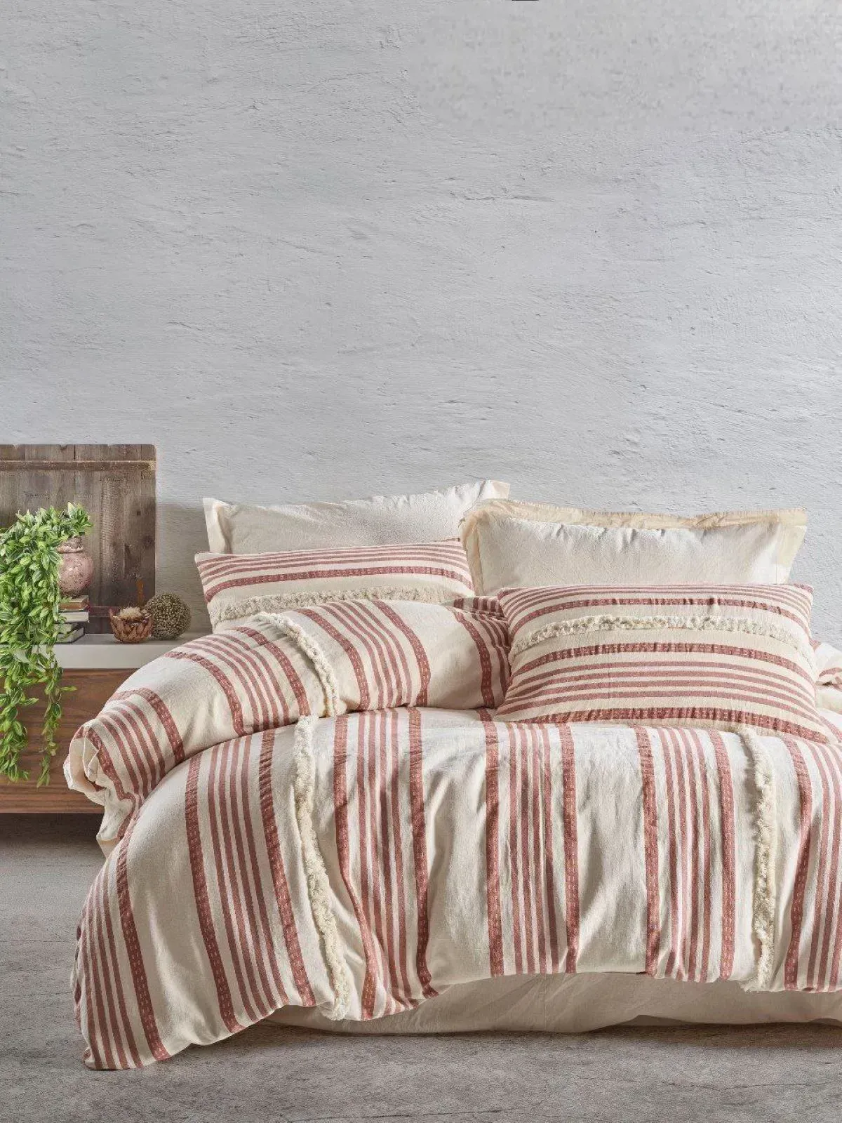 Євро комплект Saheser Nidus Kiremit з ECO-бавовни. Ранфорс, серія Naturel, Туреччина. Розмір 200х220. Стильний теракотовий дизайн для затишку вашої спальні.