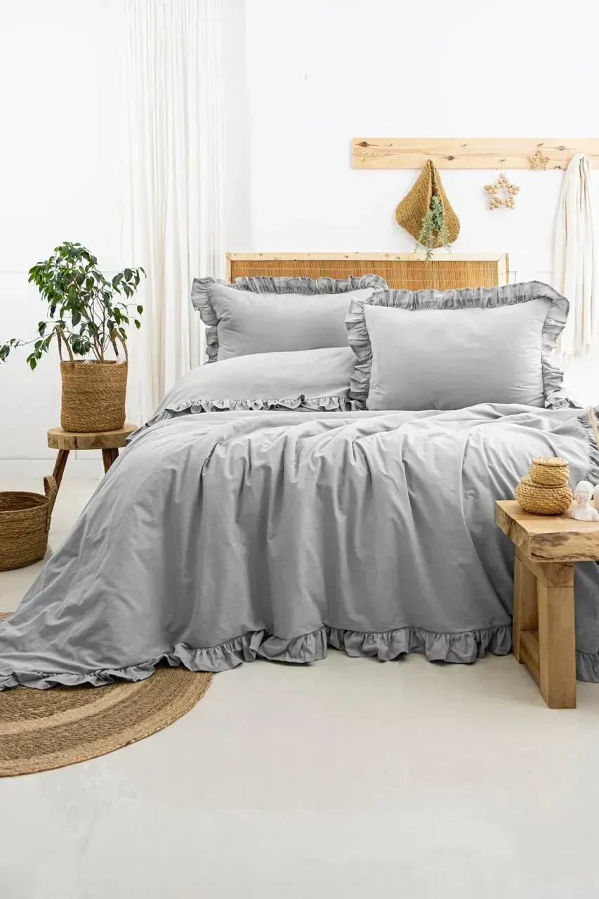 Євро комплект Saheser Saloni Gri з вареної бавовни. 100% бавовна, наволочки з рюшами. Не потребує прасування. Туреччина, преміум якість у подарунковій коробці.