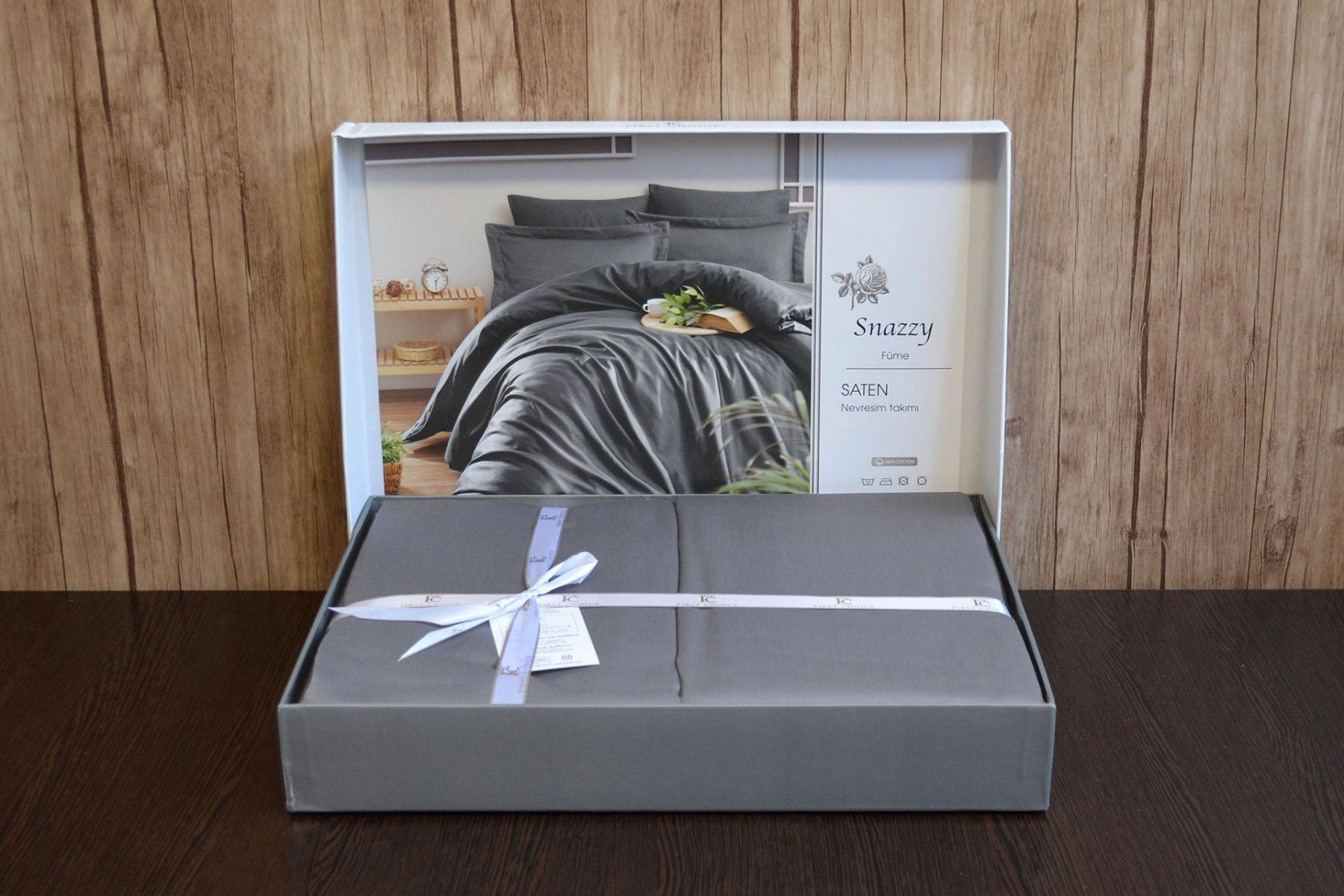 Стильний сімейний комплект First Choice Snazzy Anthracite у трендовому кольорі "антрацит" (глибокий темно-сірий). Комплектується двома підковдрами для максимального комфорту пари. Виготовлений з гладкого натурального сатину.