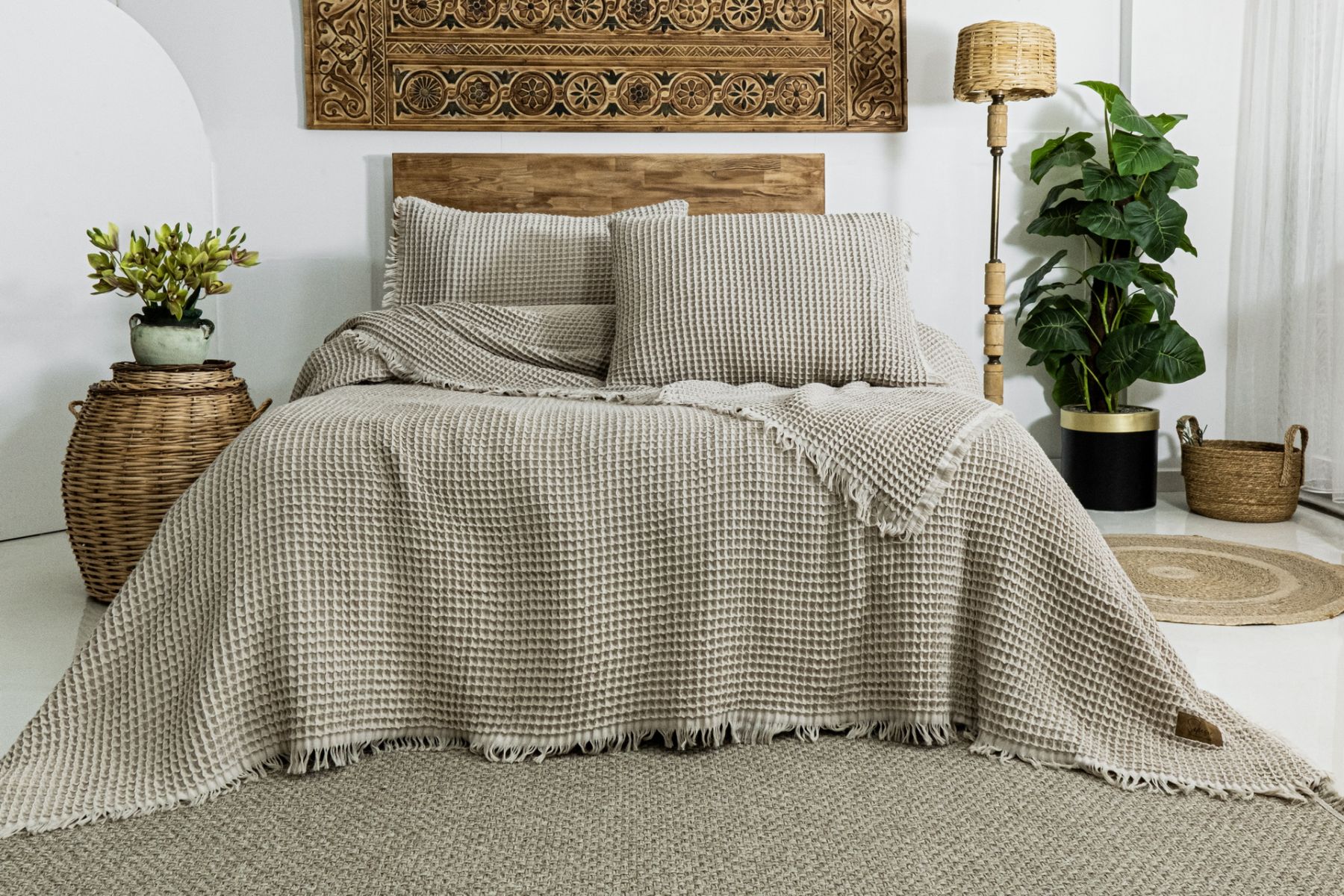 Вафельне покривало Saheser Norah Beige 240x260см +2 наволочки 50x70см