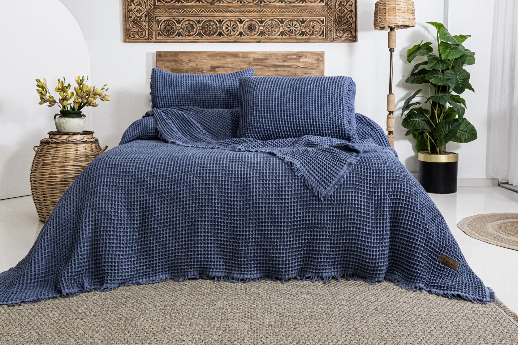 Вафельне покривало Saheser Norah Indigo 240x260см +2 наволочки 50x70см