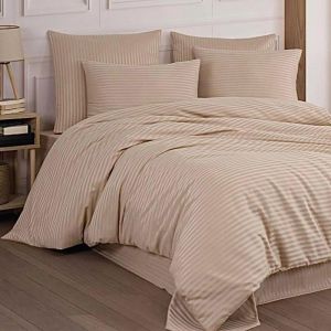 Постільна білизна Бежевий страйп Бязь Люкс MERISET - Сімейний на резинці