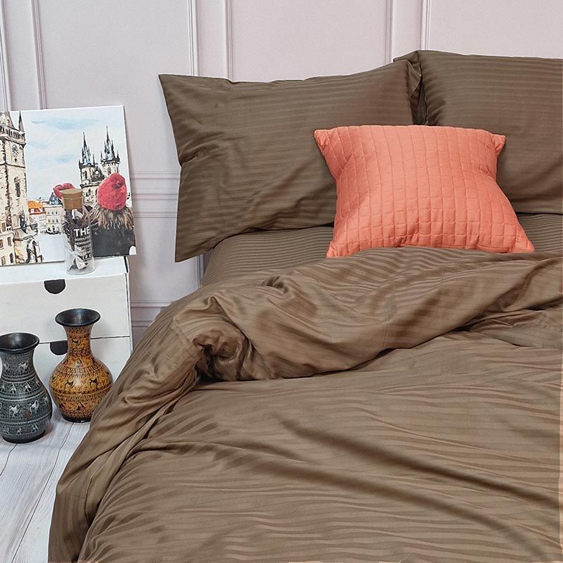 Постільна білизна CAPPUCCINO Elite Сатин страйп MERISET - Сімейний на резинці