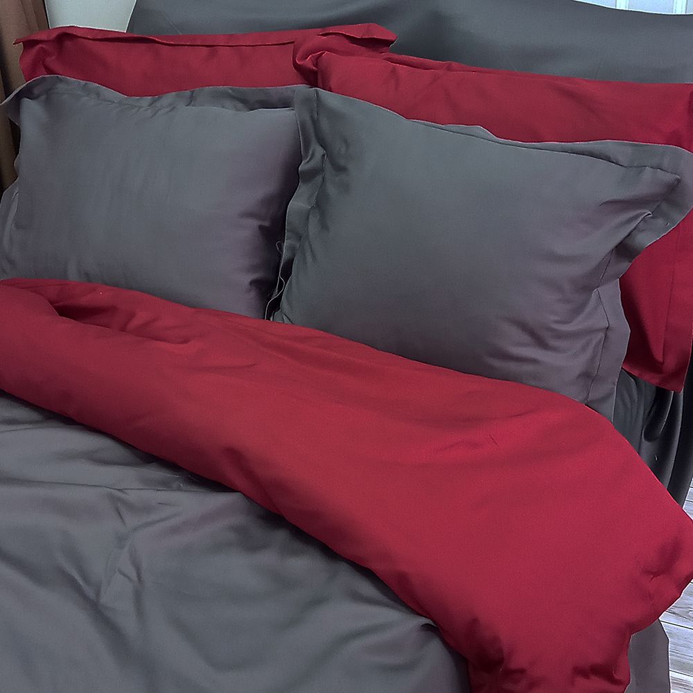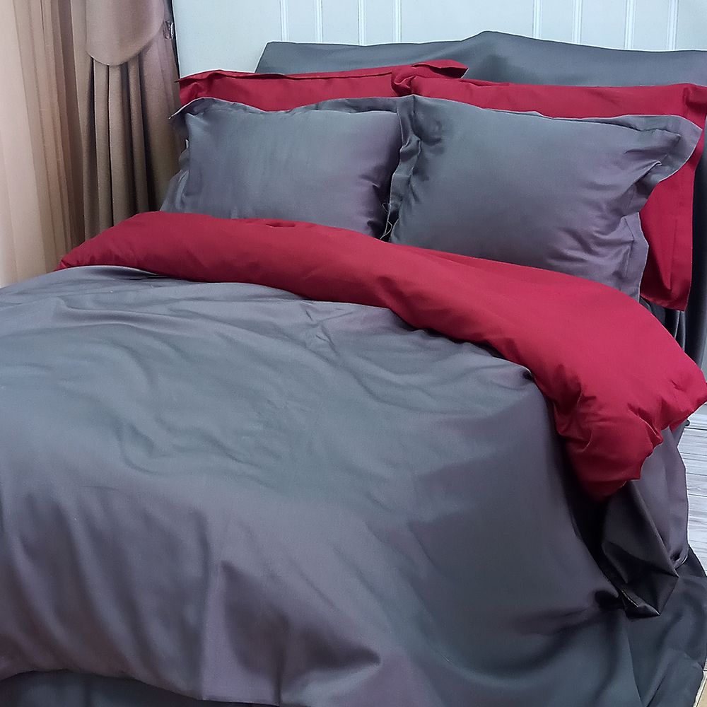 Постільна білизна ДУЕТ ANTHRACITE/WINE BORDO Premium Сатин MERISET - Сімейний на резинці