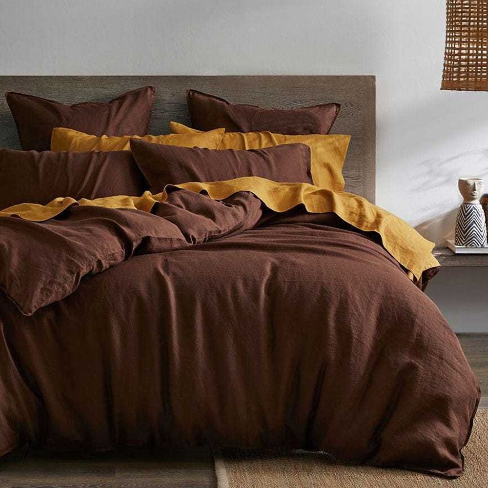Постільна білизна ДУЕТ Коричневий/Охра Ранфорс MERISET - Сімейний на резинці