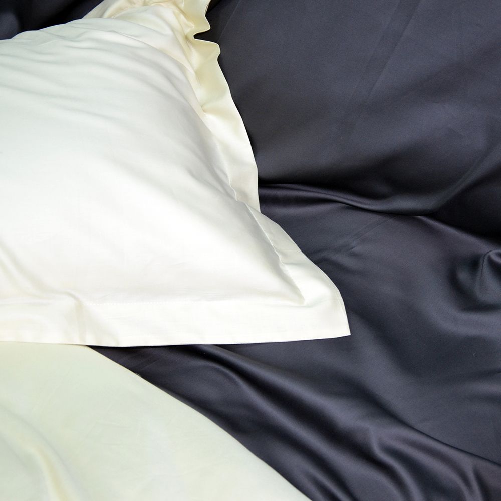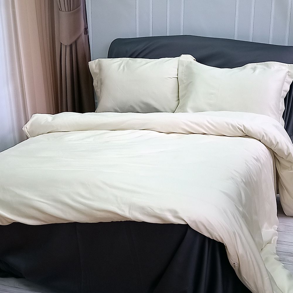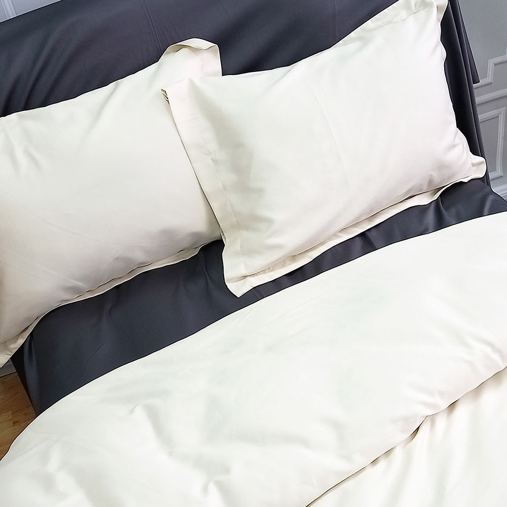Постільна білизна ДУЕТ MILK CHAMPAGNE/ANTHRACITE Premium Сатин MERISET - Сімейний на резинці