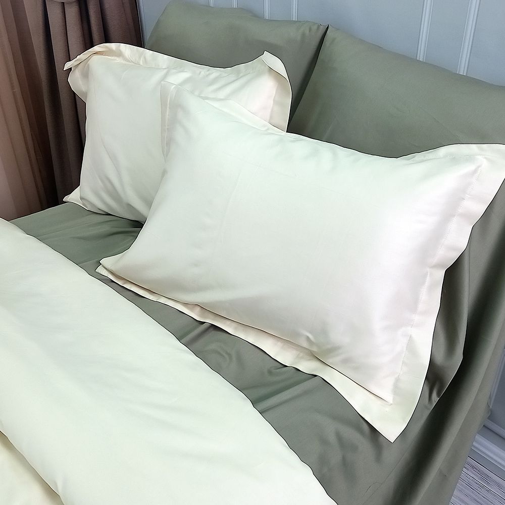 Постільна білизна ДУЕТ MILK CHAMPAGNE/OLIVE Premium Сатин MERISET - Сімейний на резинці