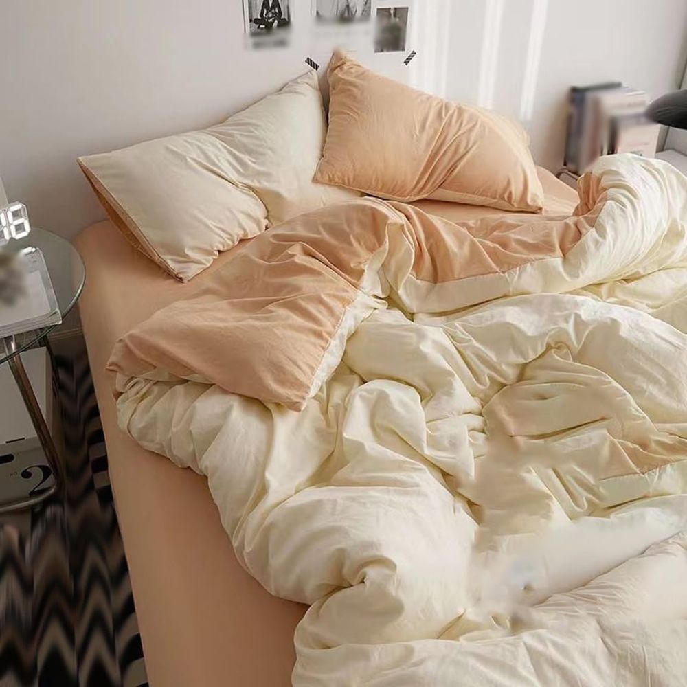 Постільна білизна ДУЕТ Пломбірне морозиво/Крем-брюле Ранфорс MERISET - Сімейний на резинці