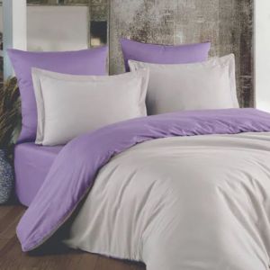 Постільна білизна ДУЕТ Сірий/Лавандовий настрій Ранфорс MERISET - Сімейний на резинці
