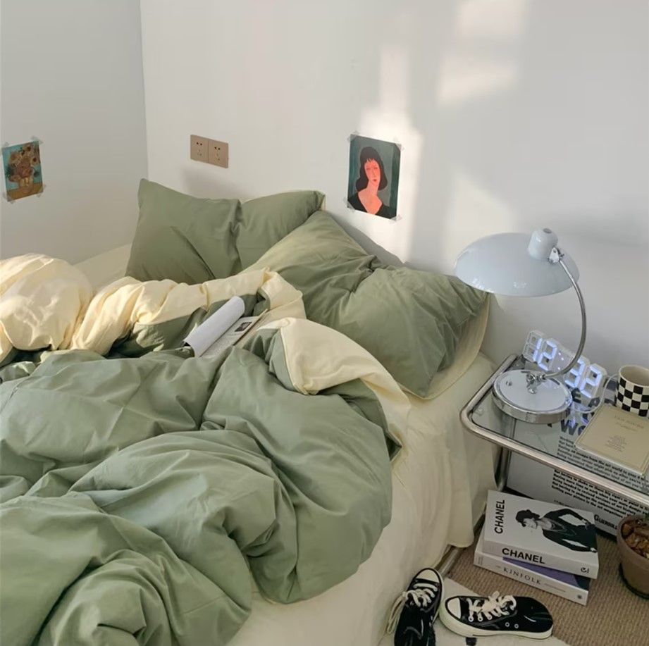 Постільна білизна ДУЕТ Світла оливка/Пломбірне морозиво Ранфорс MERISET - Сімейний на резинці