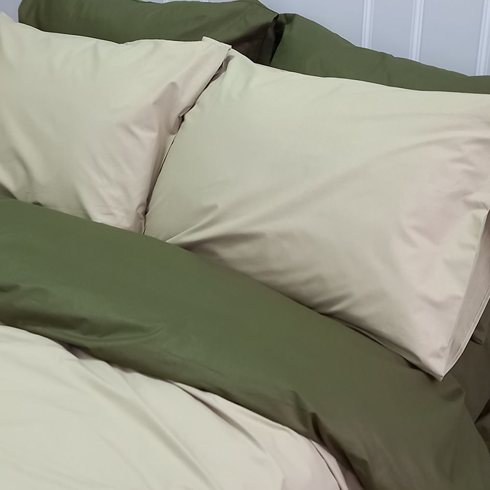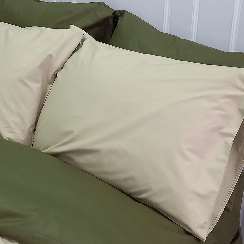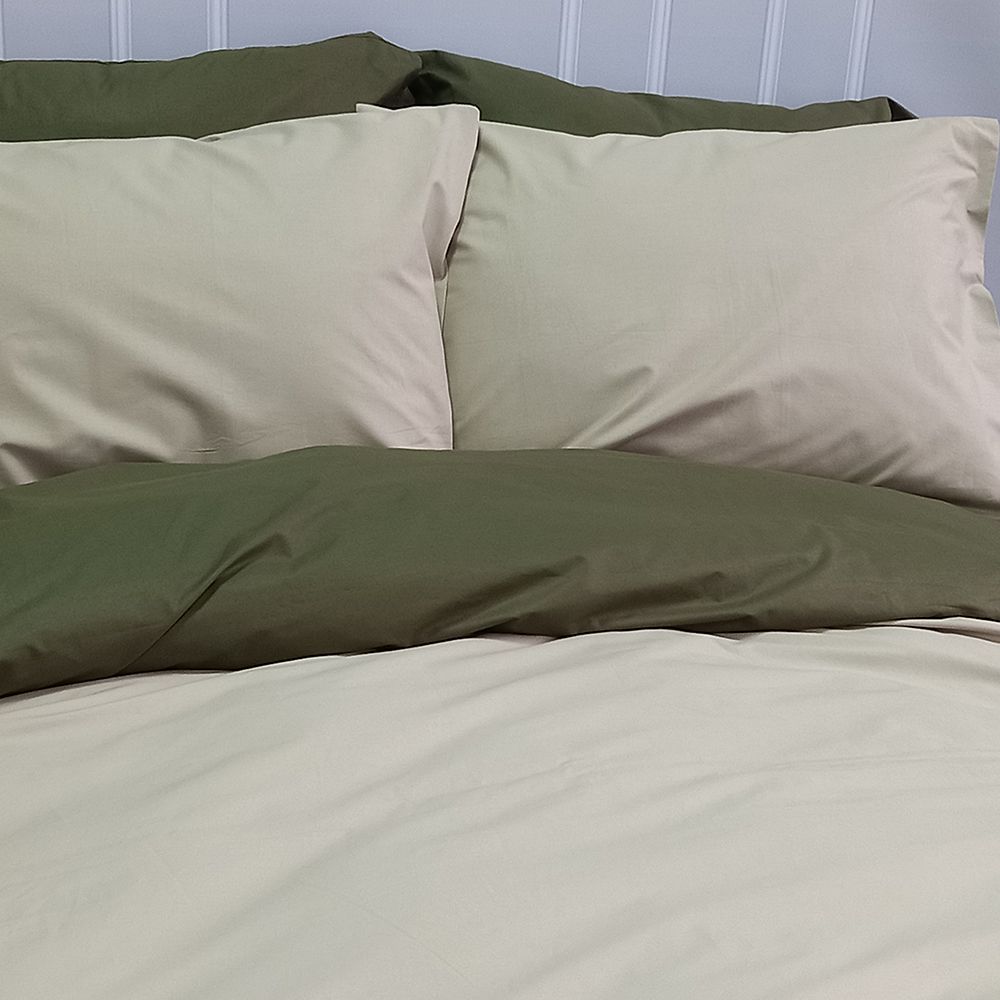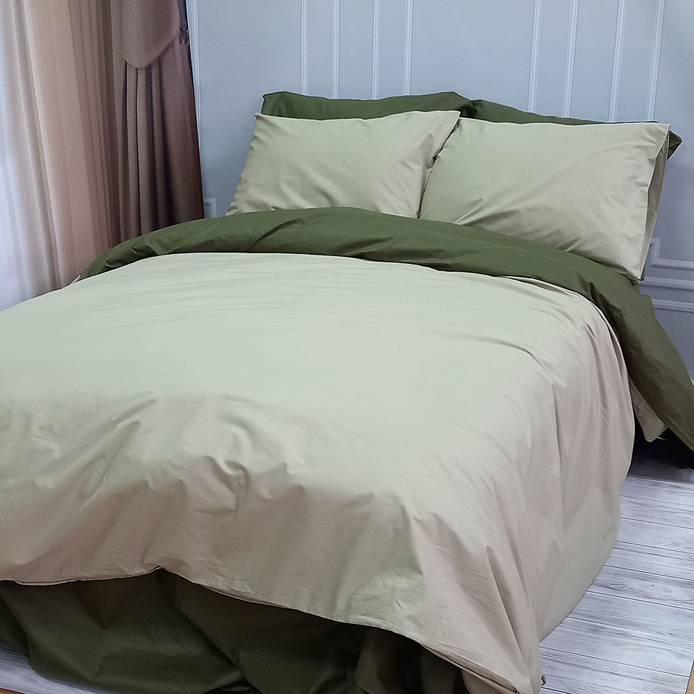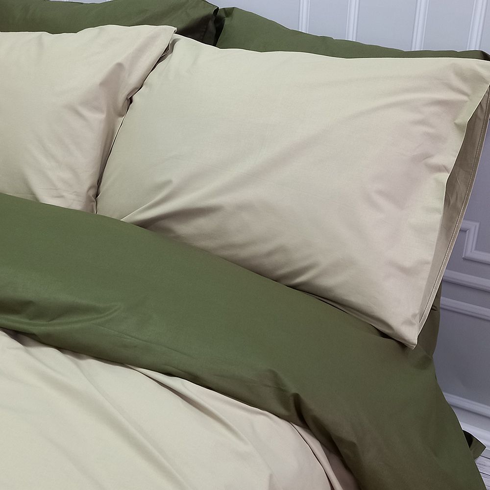 Постільна білизна ДУЕТ Світла оливка/Темний Хакі Ранфорс MERISET - Сімейний на резинці