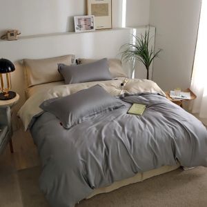 Постільна білизна ДУЕТ TRUE GREY/DESERT SAND Premium Сатин однотон MERISET - Сімейний на резинці