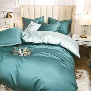Постільна білизна ДУЕТ TURQUIOSE/ICE BLUE Premium Сатин однотон MERISET - Сімейний на резинці