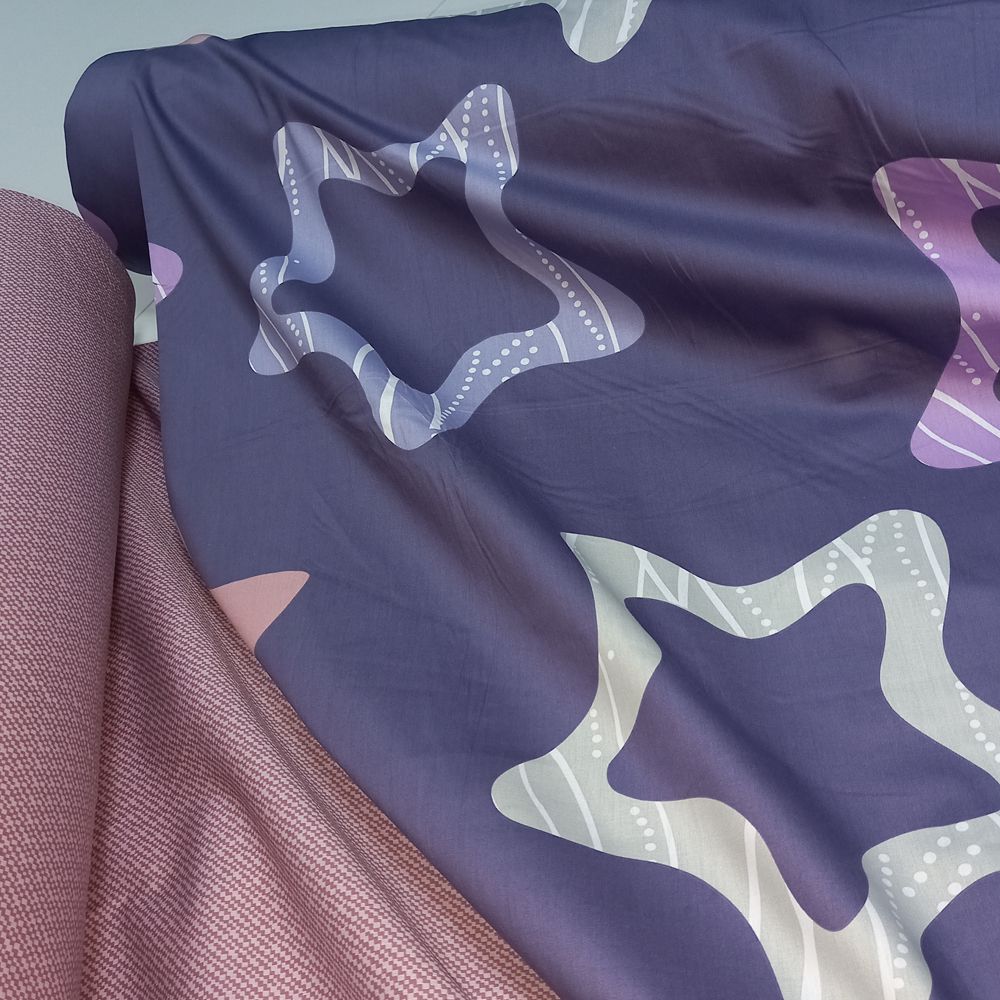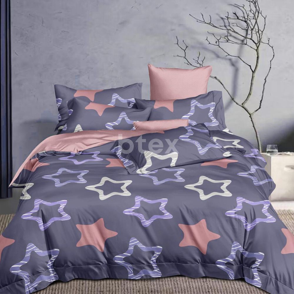 Постільна білизна Фіолетові зірки Сатин MERISET - Сімейний на резинці