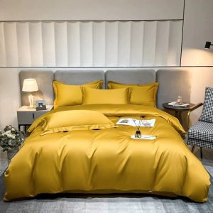 Постільна білизна GOLDEN Premium Сатин однотон MERISET - Сімейний на резинці