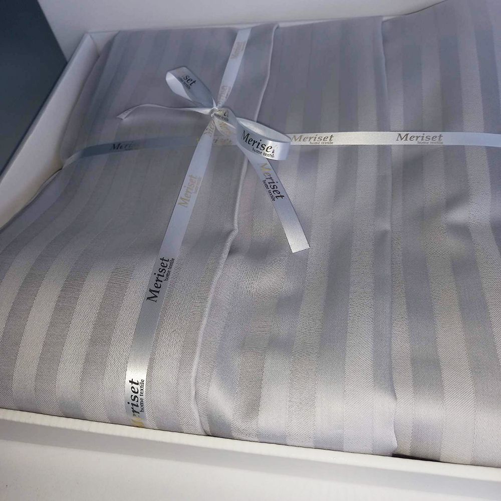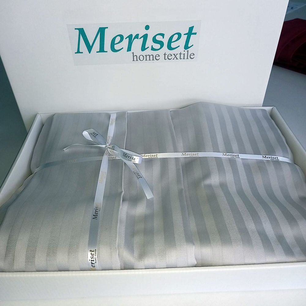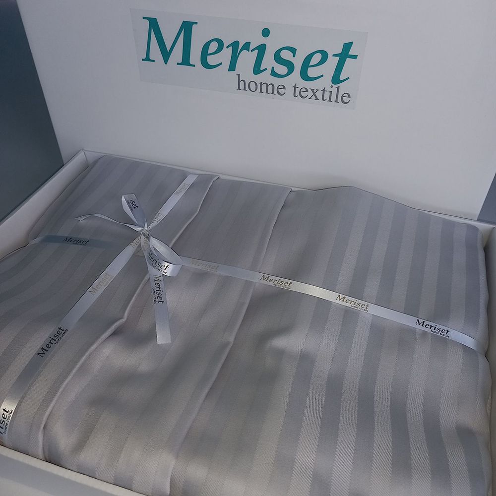 Постільна білизна GREY Elite Сатин страйп MERISET - Сімейний на резинці