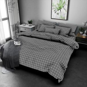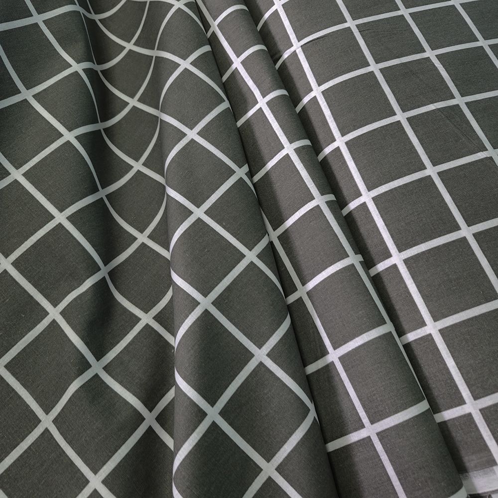 Постільна білизна Клітинка сіра Бязь Люкс MERISET - Сімейний на резинці