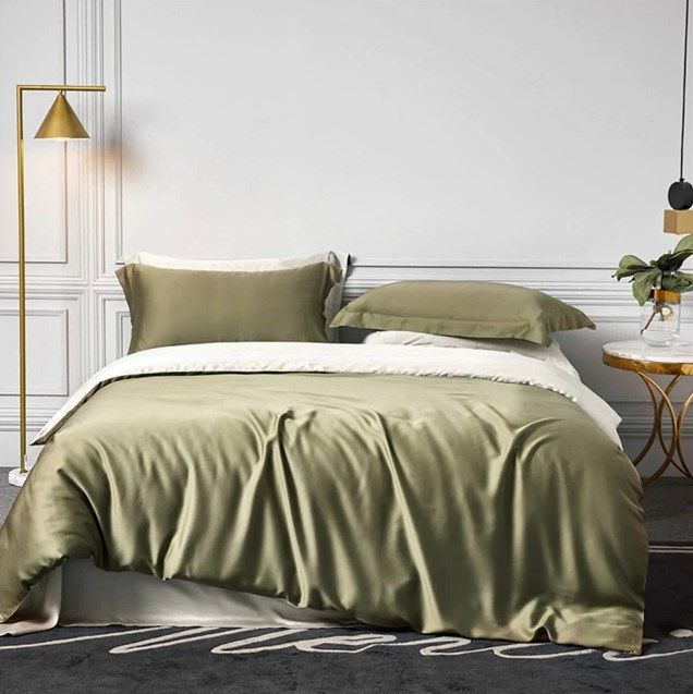 Постільна білизна OLIVE Premium Сатин однотон MERISET - Сімейний на резинці