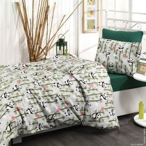 Постільна білизна Панди зелені Ранфорс MERISET - Сімейний на резинці