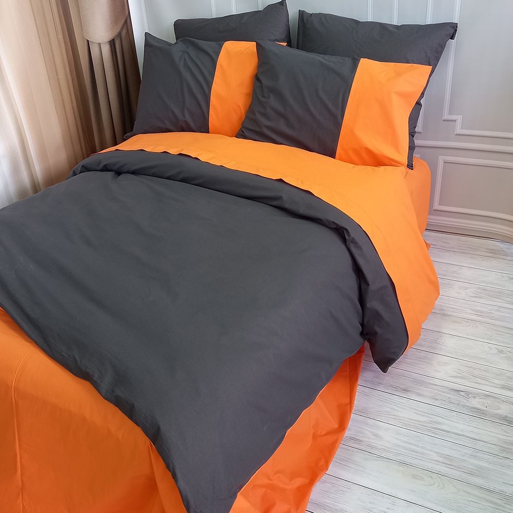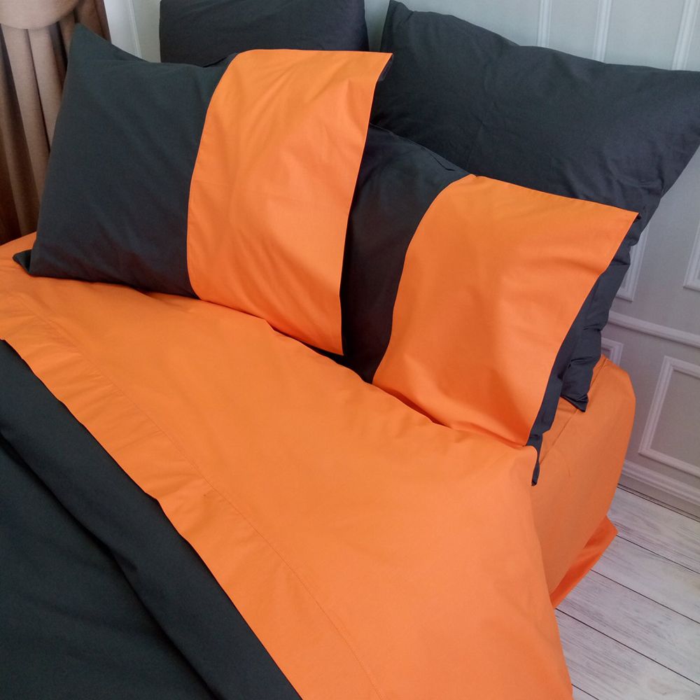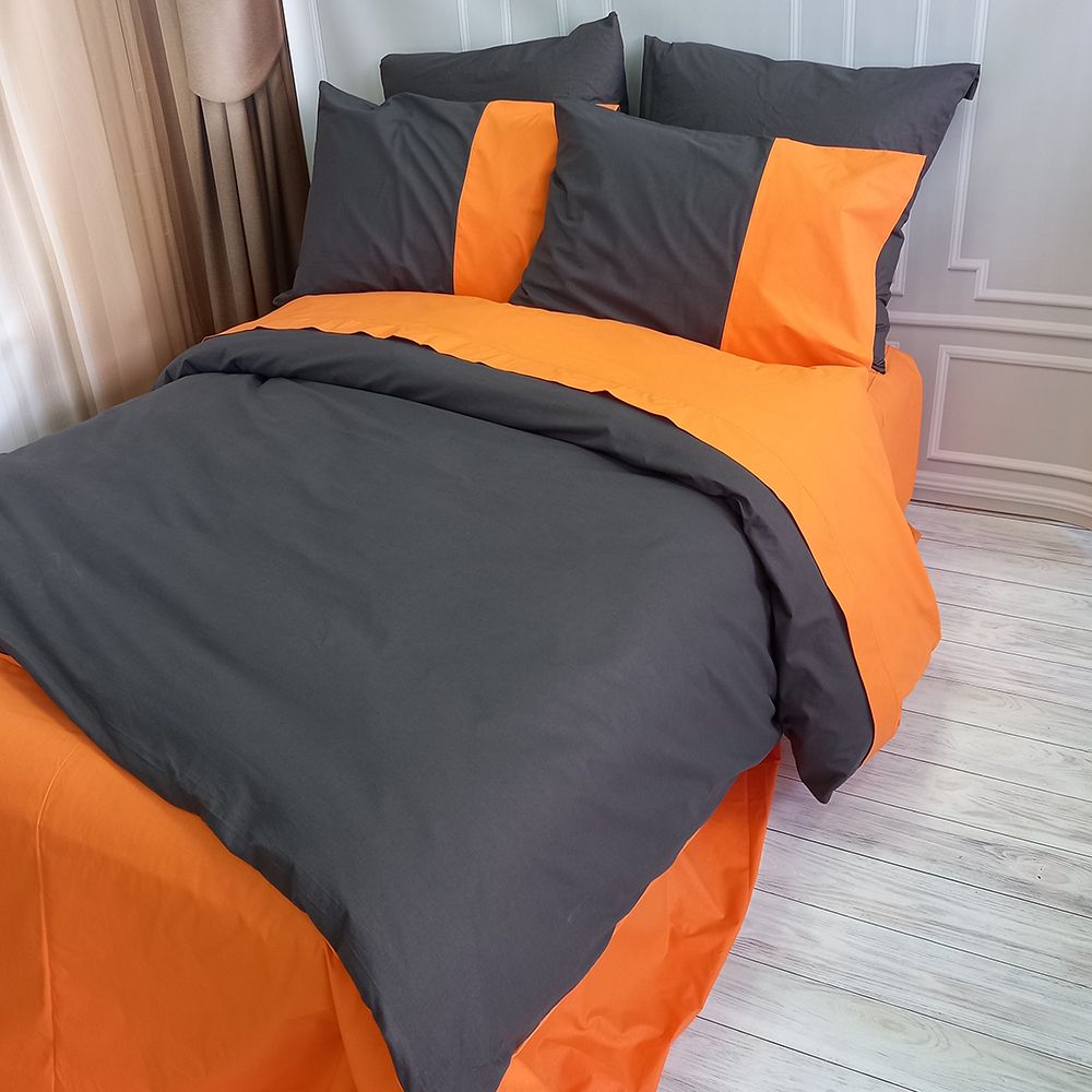 Постільна білизна PREMIERE Антрацит/Помаранчевий Ранфорс MERISET - Сімейний на резинці