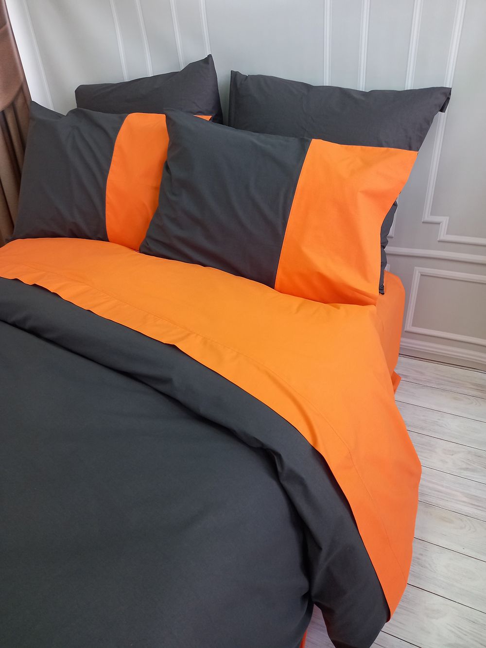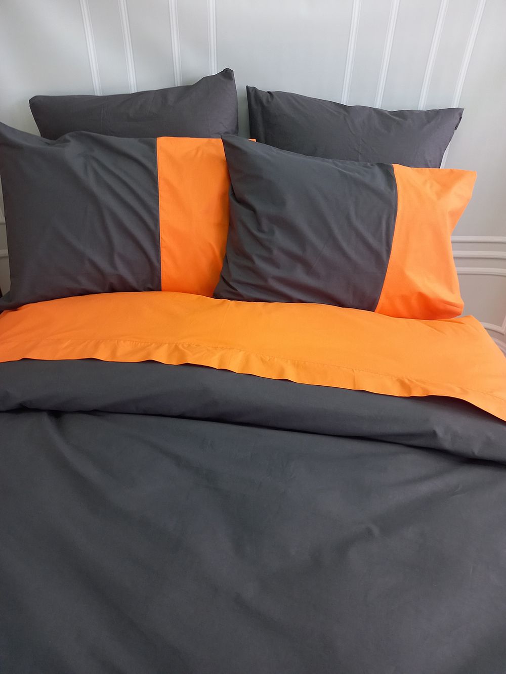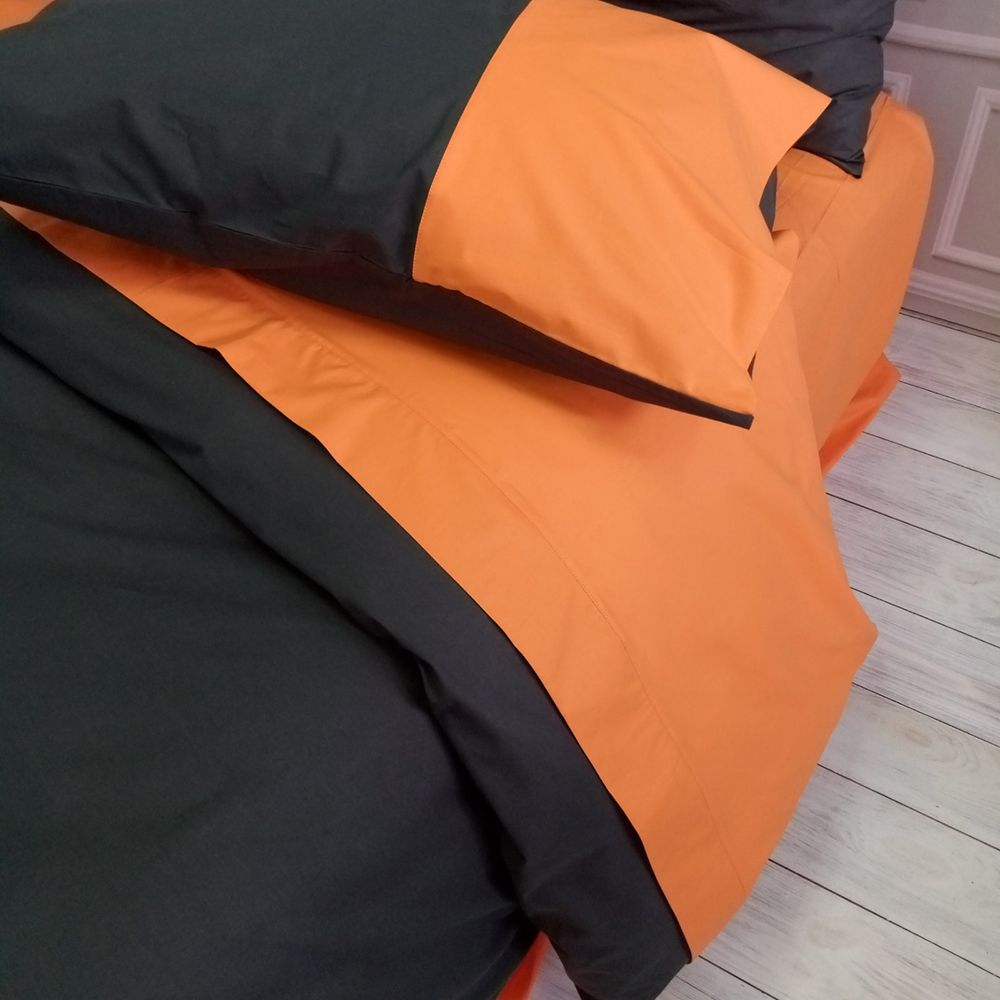 Постільна білизна PREMIERE Антрацит/Помаранчевий Ранфорс MERISET - Сімейний на резинці