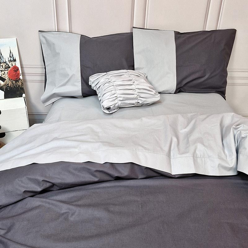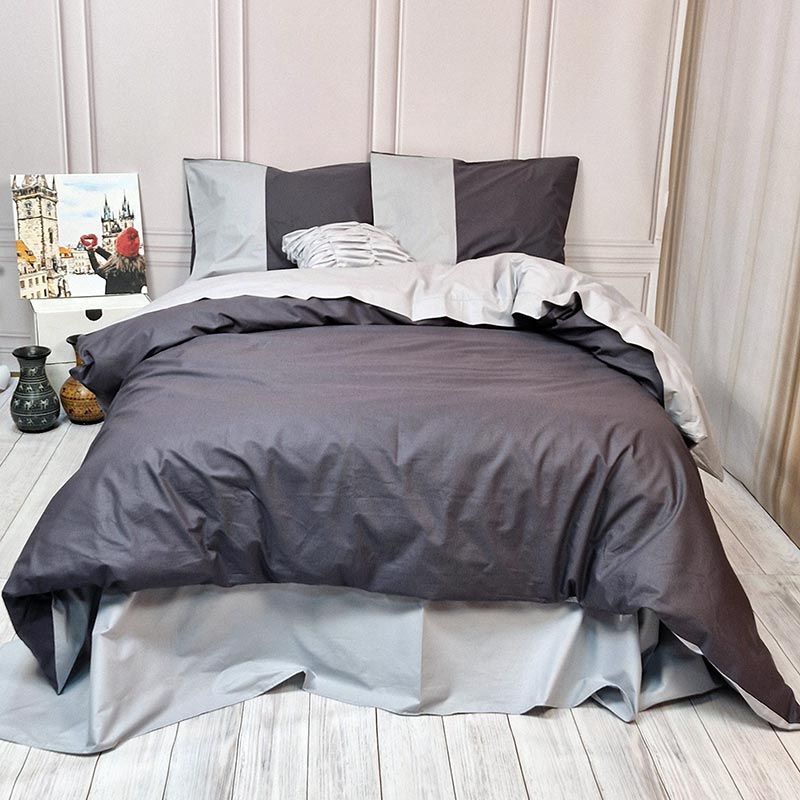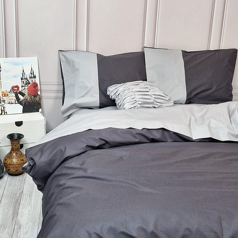 Будьте уважні! Наволочки в комплекті двокольорові як на фото розміром тільки 50х70 см. Підковдра з гарною контрасною відстрочкою по верху, двостороння, на блискавці.