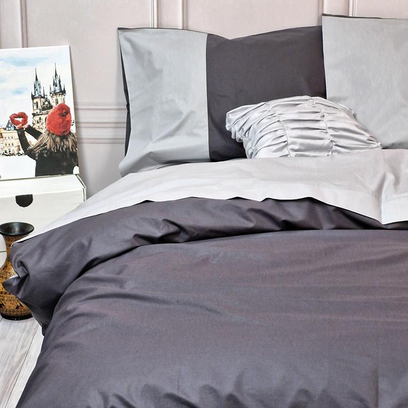 Постільна білизна PREMIERE Антрацит/Сірий Ранфорс MERISET - Сімейний на резинці
