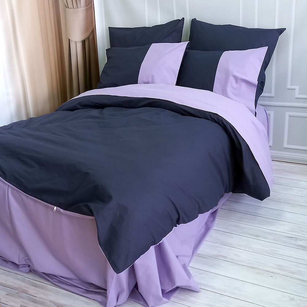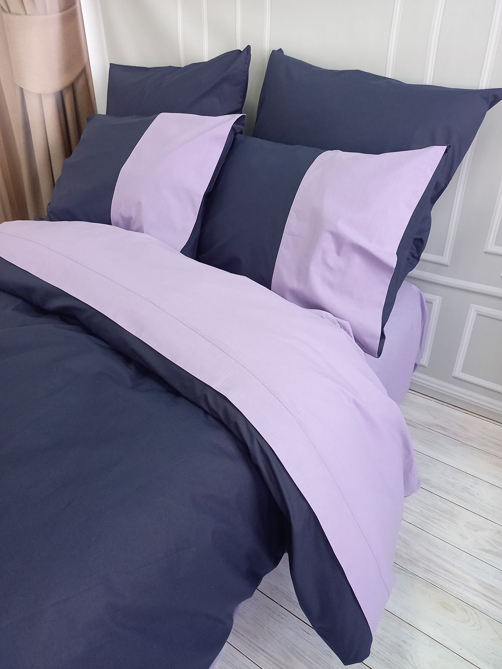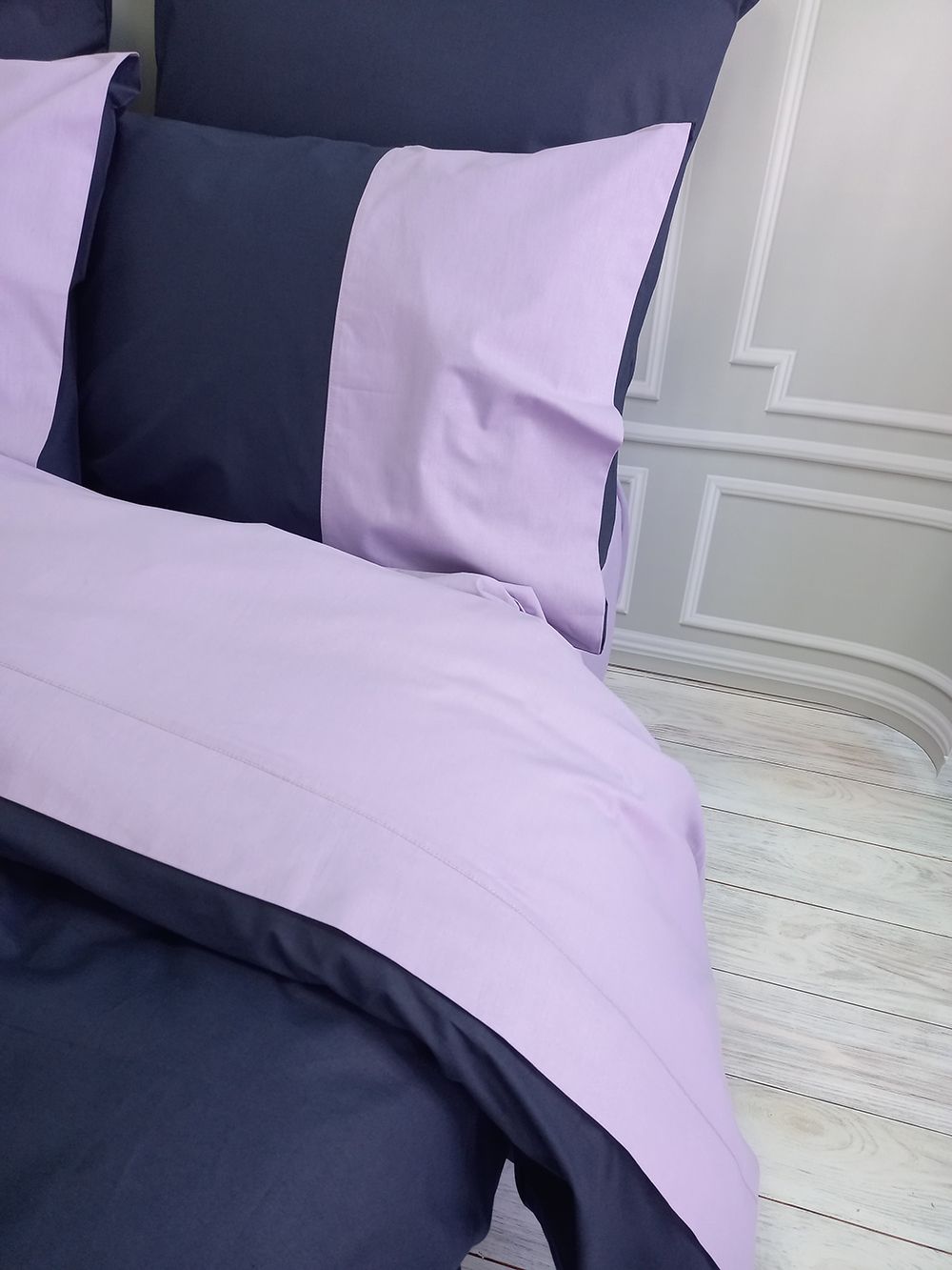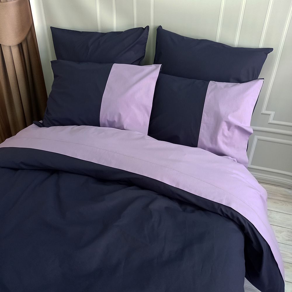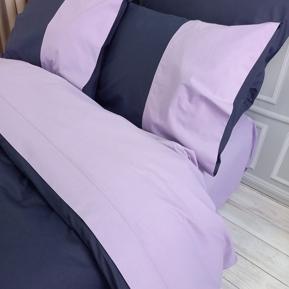 Постільна білизна PREMIERE Темносинє/Лавандовий настрій Ранфорс MERISET - Сімейний на резинці