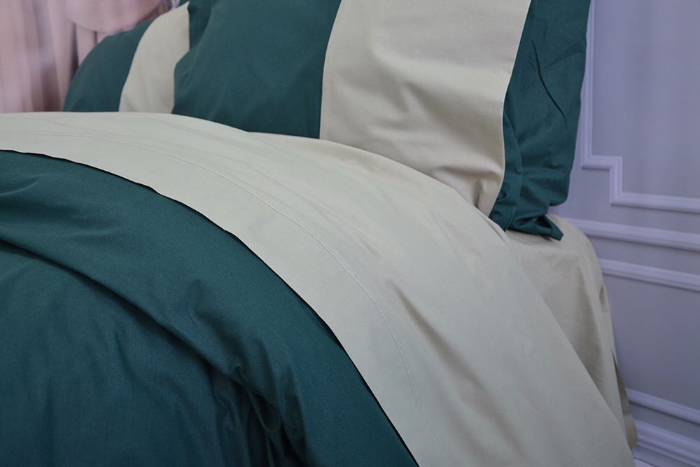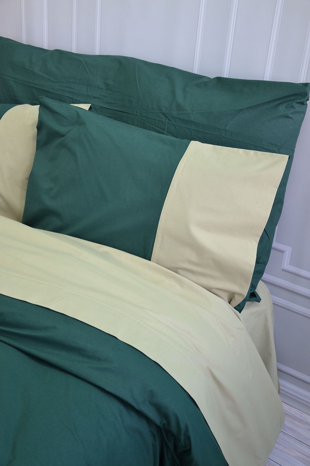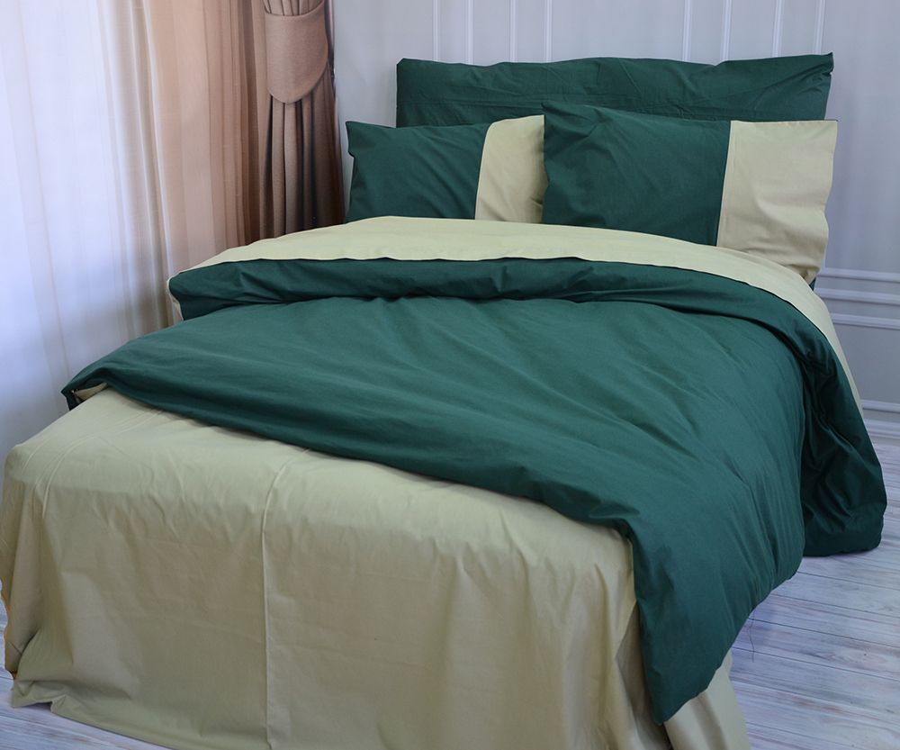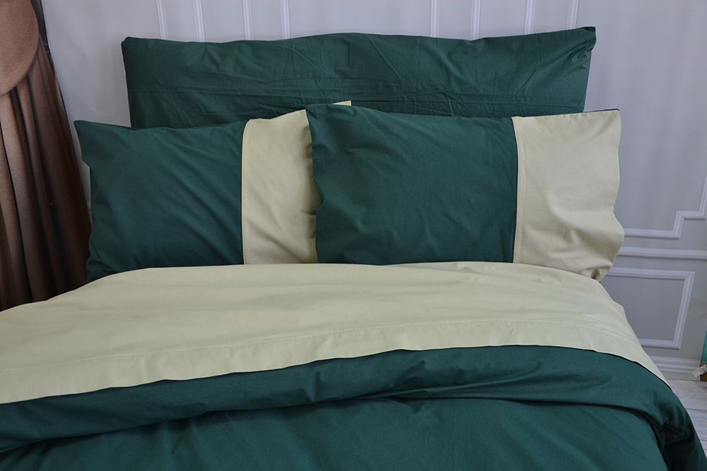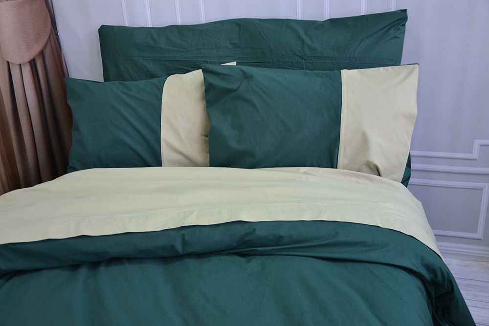 Постільна білизна PREMIERE Темнозелене/Світла оливка Ранфорс MERISET - Сімейний на резинці