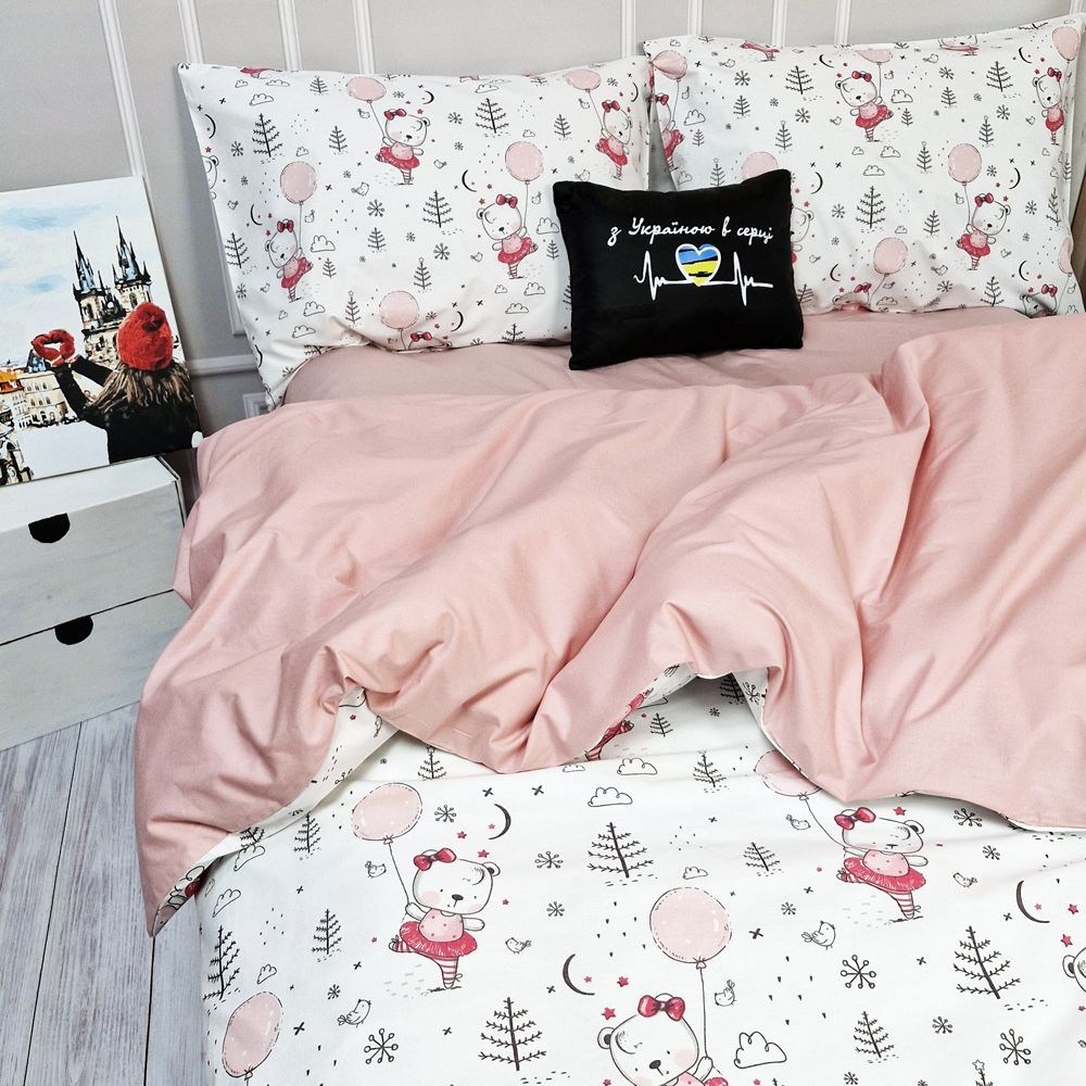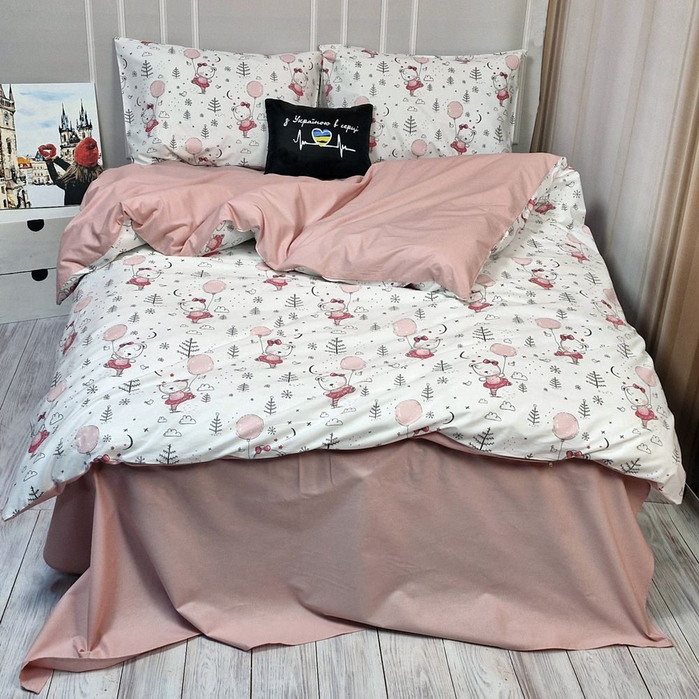 Постільна білизна Пудрова кулька Ранфорс MERISET - Сімейний на резинці