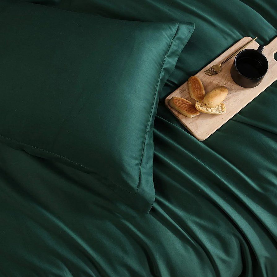 Постільна білизна ROYAL GREEN Premium Сатин однотон MERISET - Сімейний на резинці