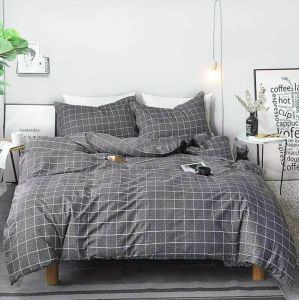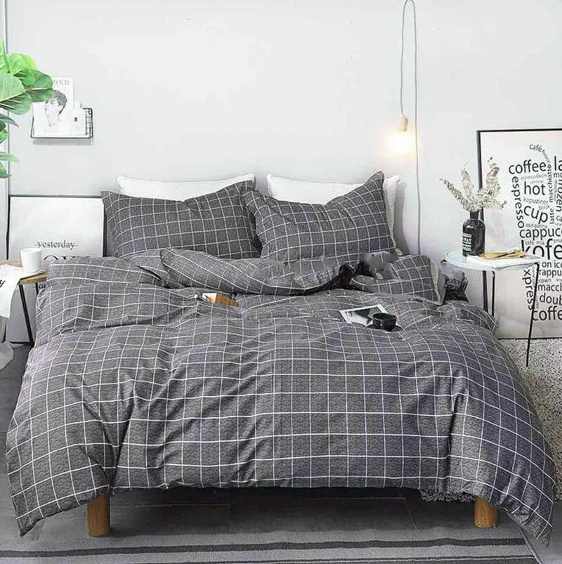 Постільна білизна Сіра клітинка Сатин MERISET - Сімейний на резинці