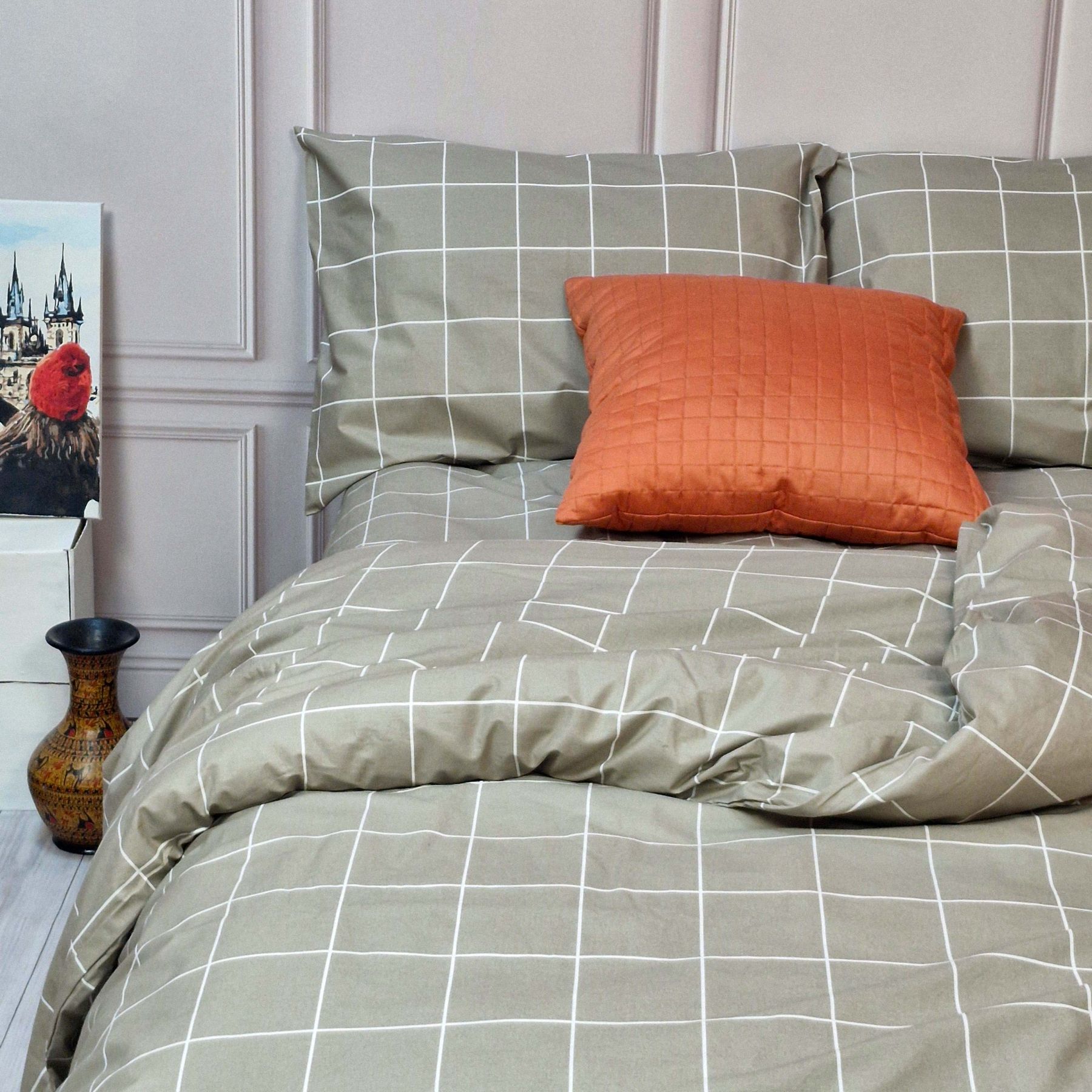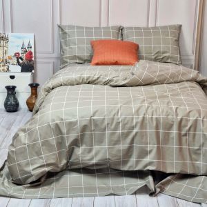 Постільна білизна Тартан бежевий ранфорс MERISET - Сімейний на резинці